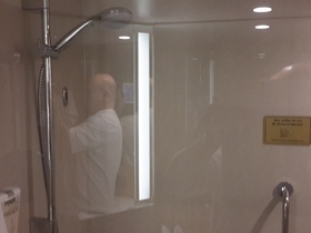 Der Vorteil der Kabine ist, dass sie gleich neben einem der beiden Waschsalons an Bord liegt. So muss man nicht erst weite Wege mit der Schmutzwäsche zurücklegen, um zu schauen, ob eine Waschmaschine frei ist, Der Nachteil dabei kann aber für einige sein, dass die Tür des Waschsalons oft offen ist und man dann das Gefühl hat, dass nebenan ein Flughafen ist.
