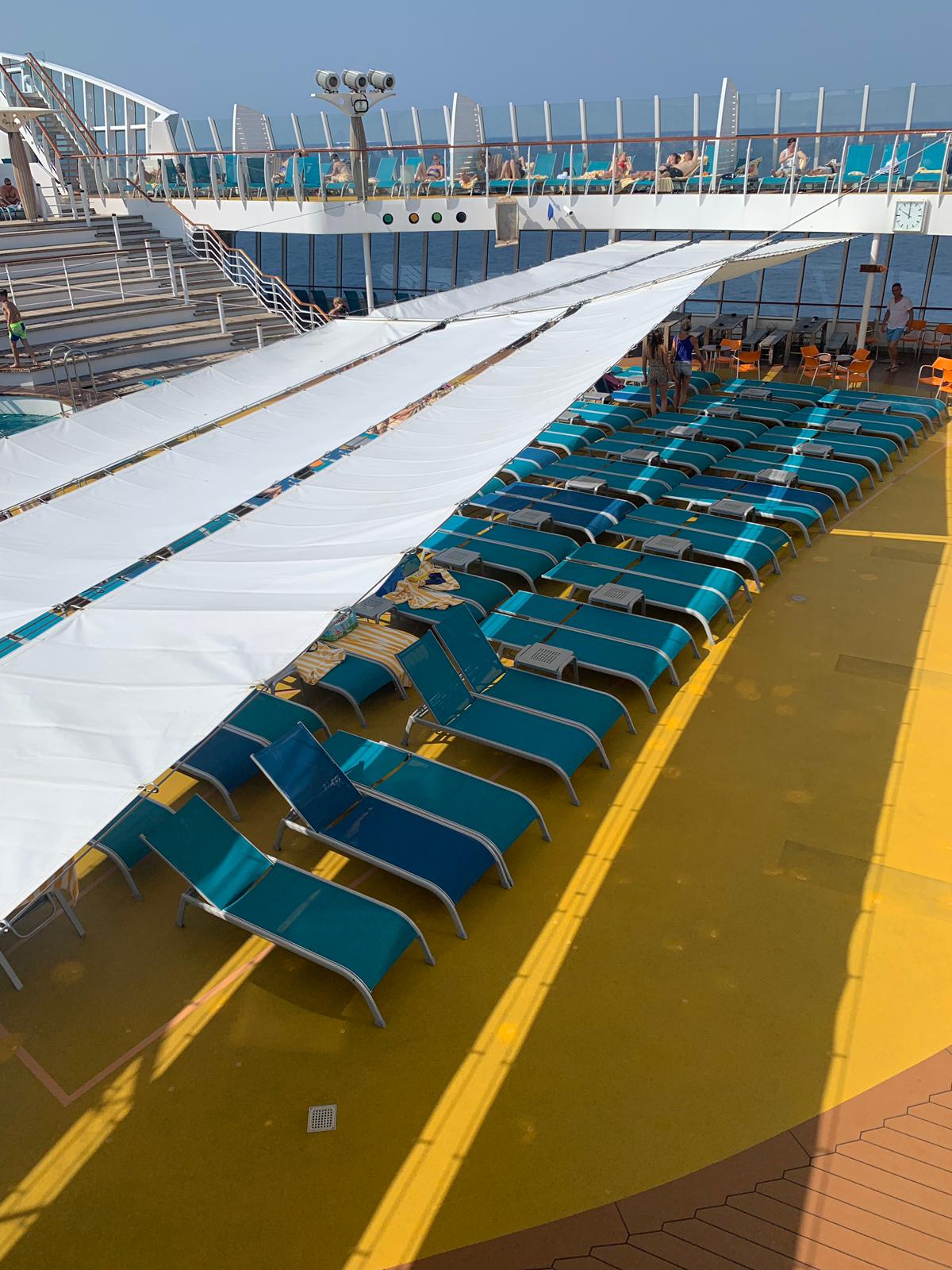 Vor 2 Wochen auf der Blu sind mir erstmals Sonnensegel (oder wie man es nennen will) auf Deck 11 aufgefallen. Fand ich super, denn es gibt generell viel zu wenig Schattenplätze.