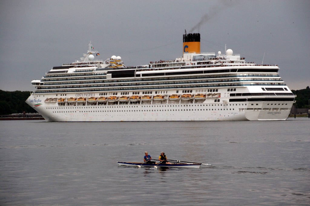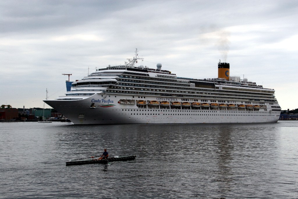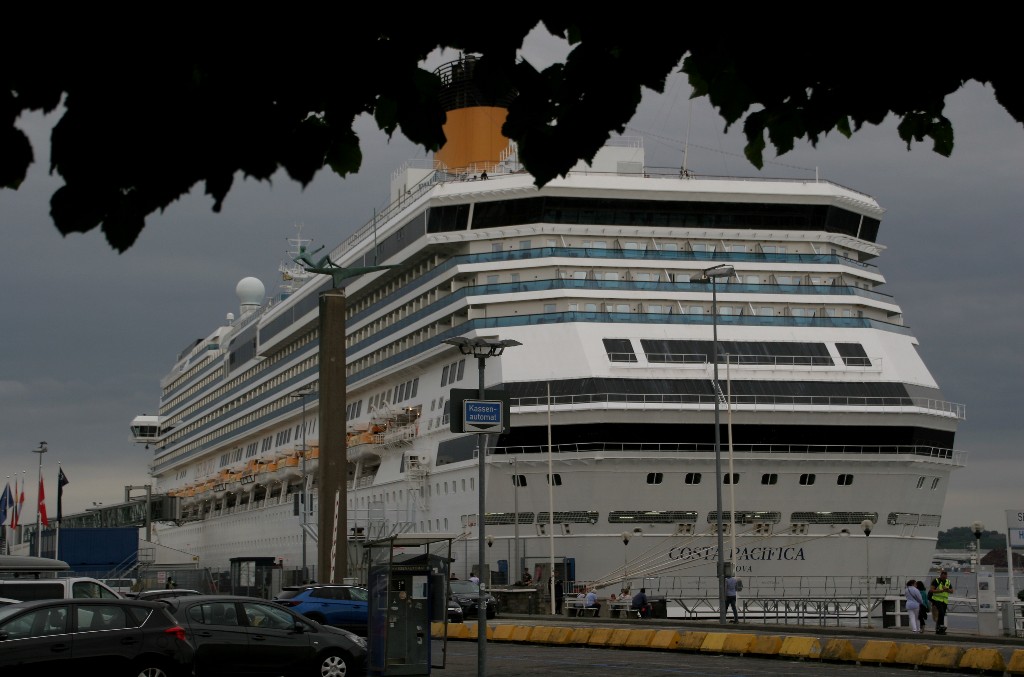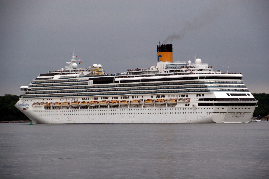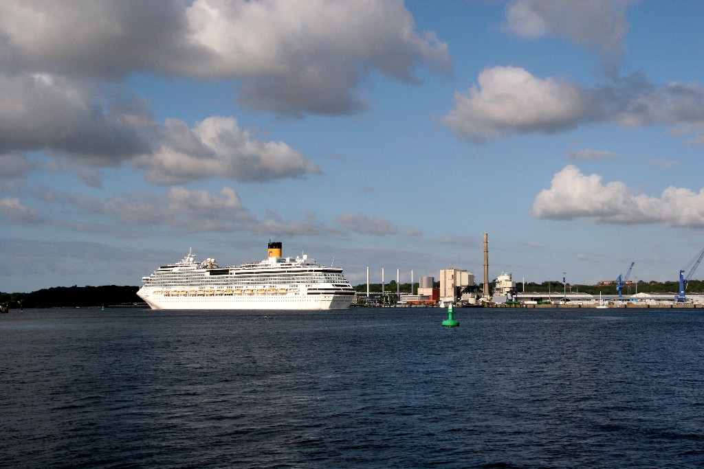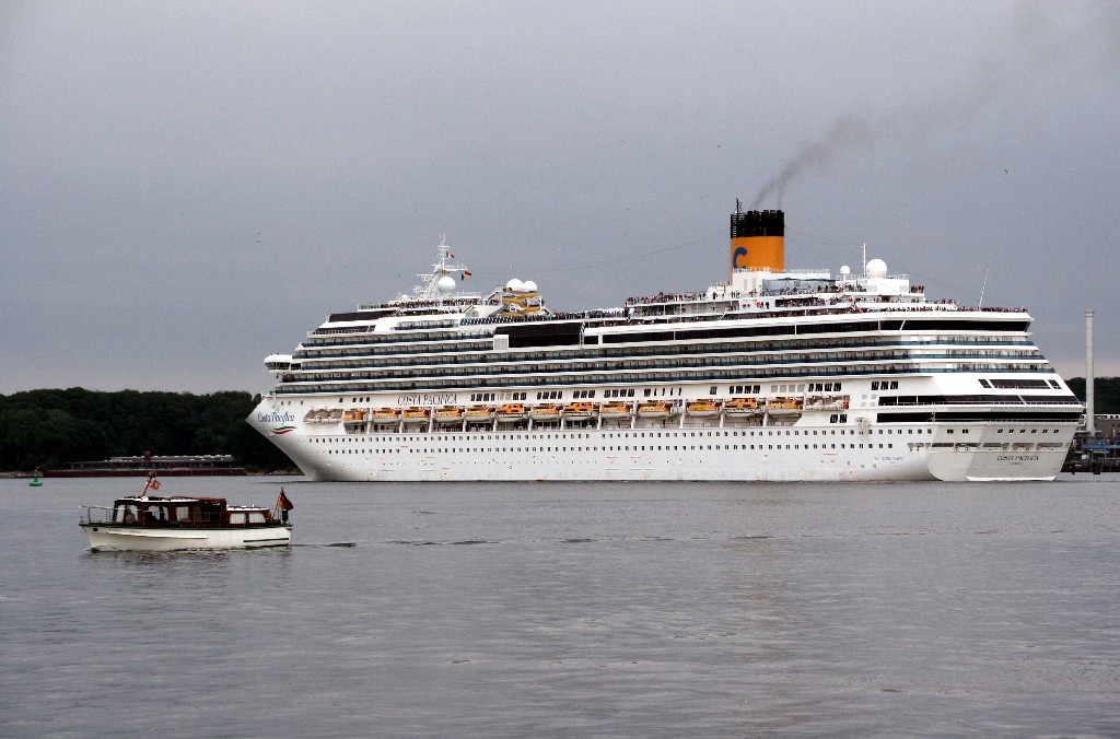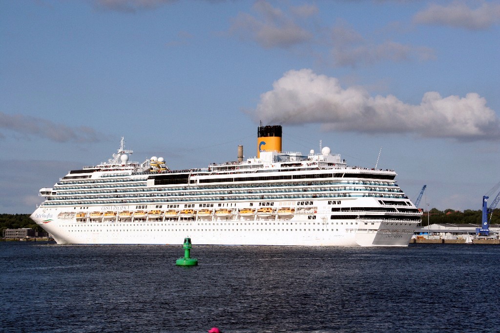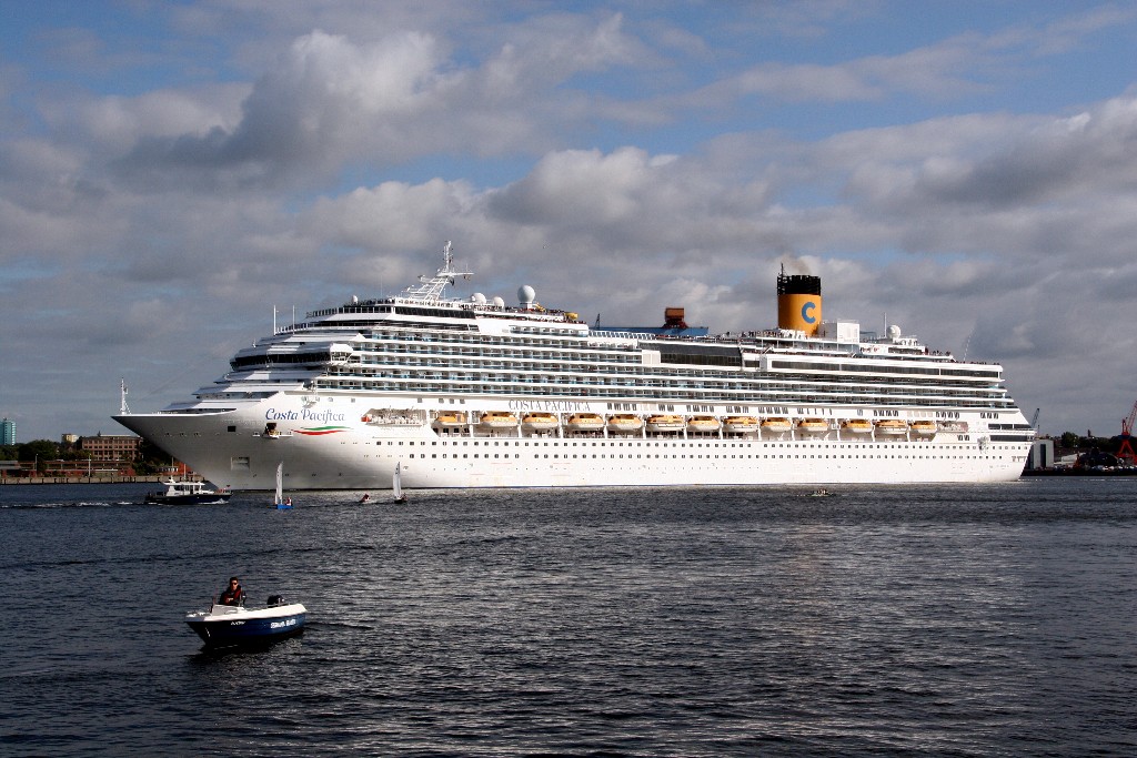 Die "Costa Pacifica" fährt um 18:21h ihr Auslaufmanöver auf der "Kieler Förde"