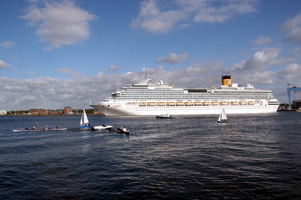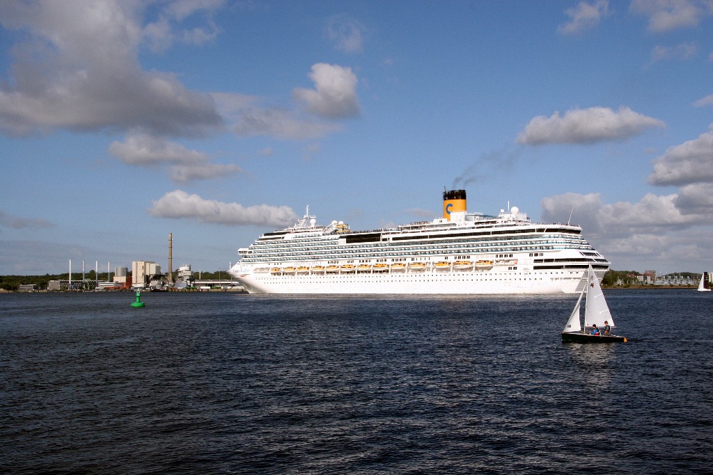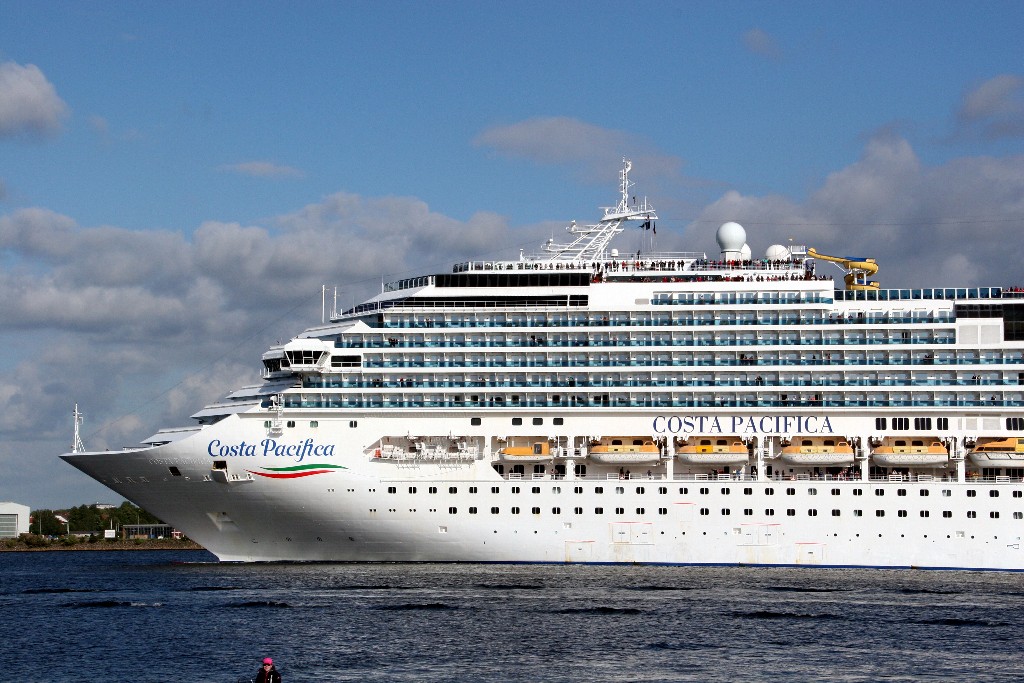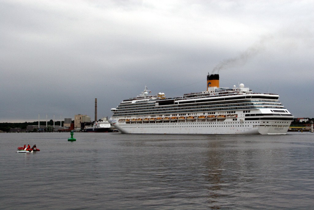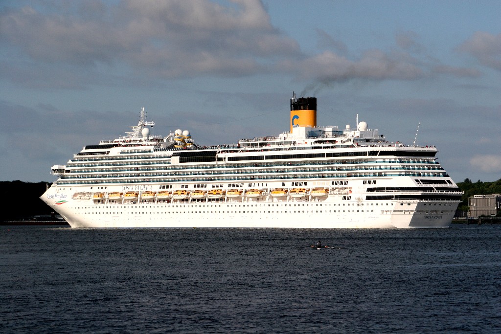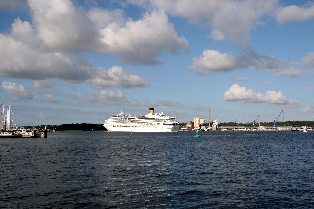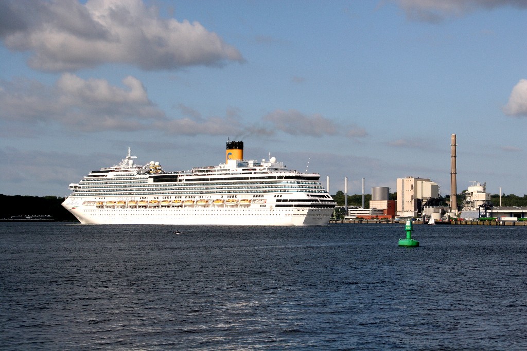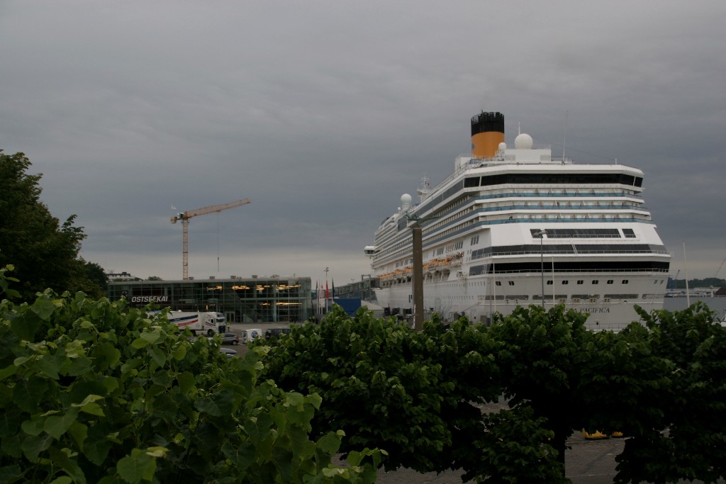 Die "Costa Pacifica" fährt um 18:21h ihr Auslaufmanöver auf der "Kieler Förde"