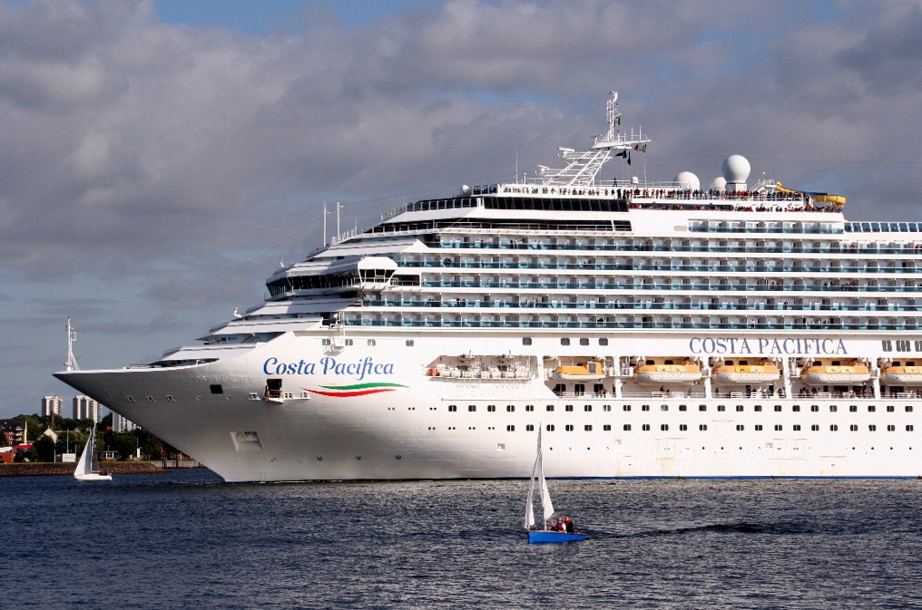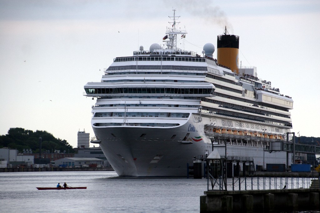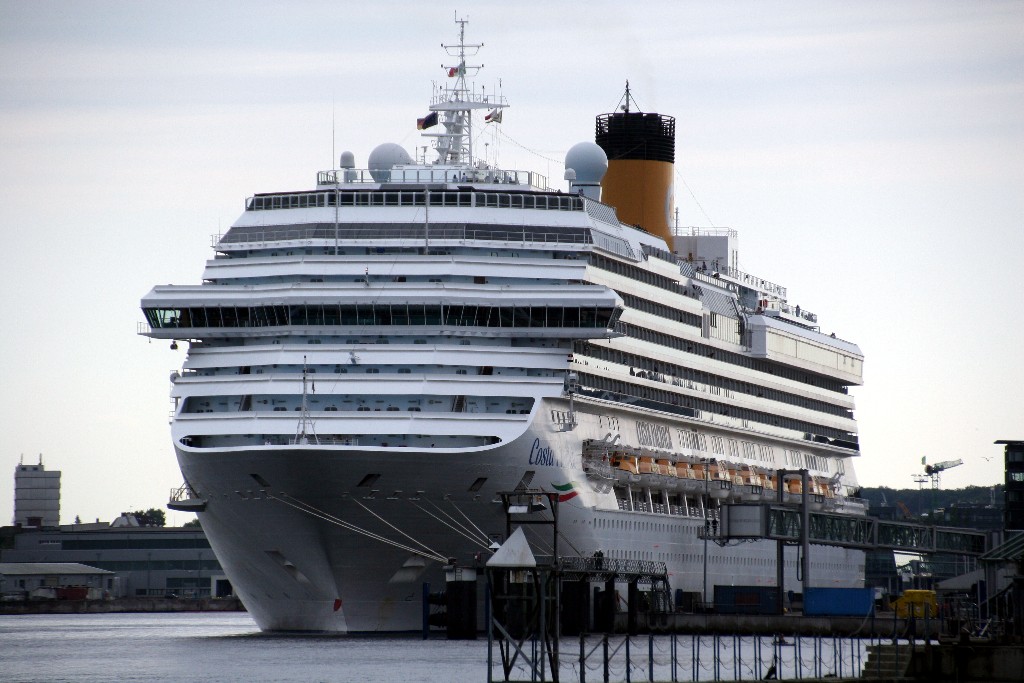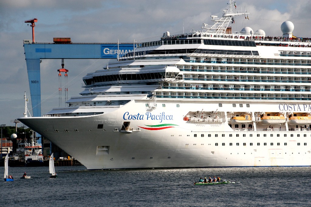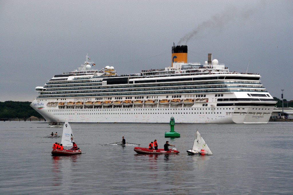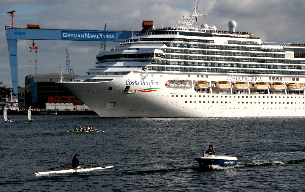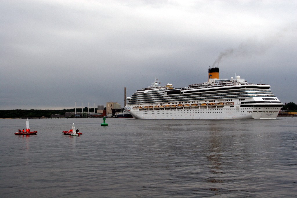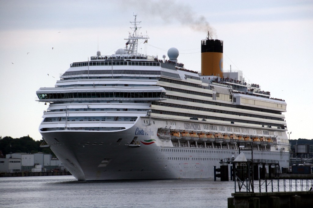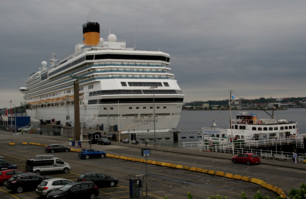 Die "Costa Pacifica" fährt um 18:21h ihr Auslaufmanöver auf der "Kieler Förde"