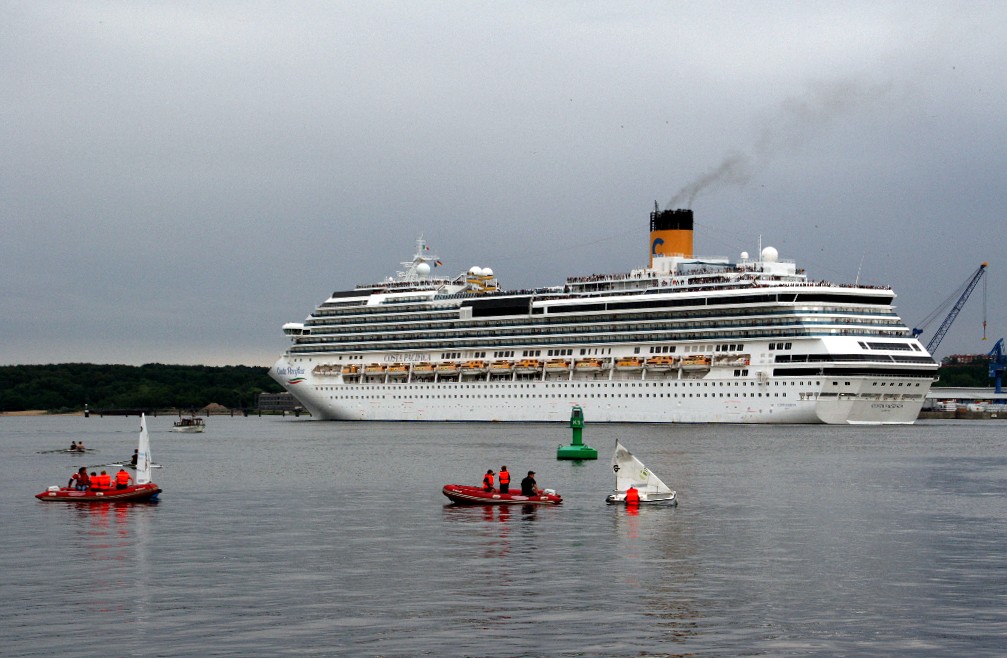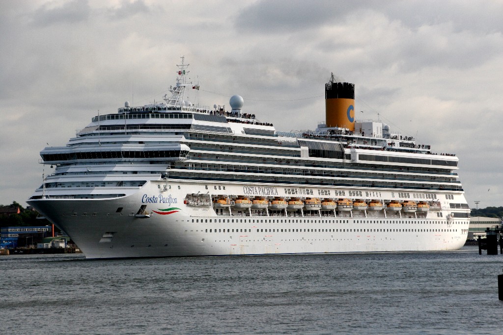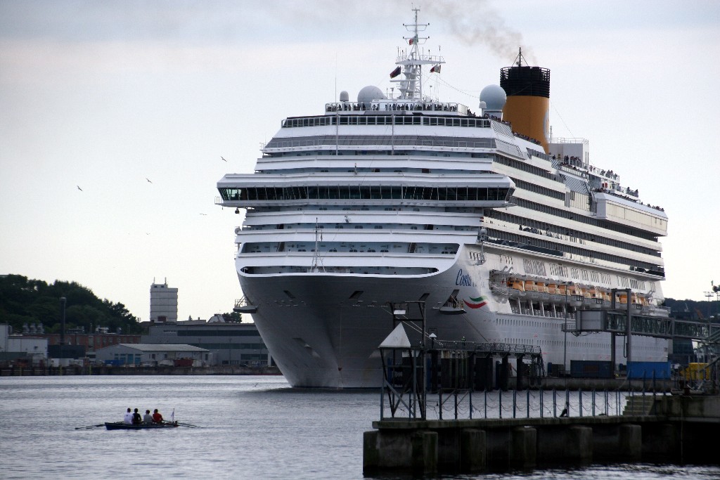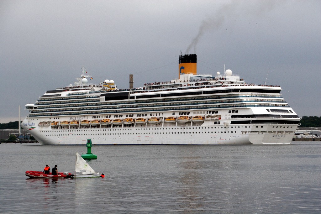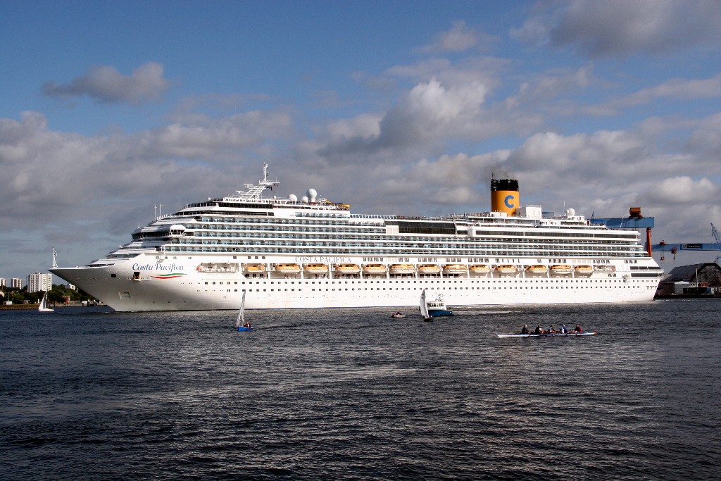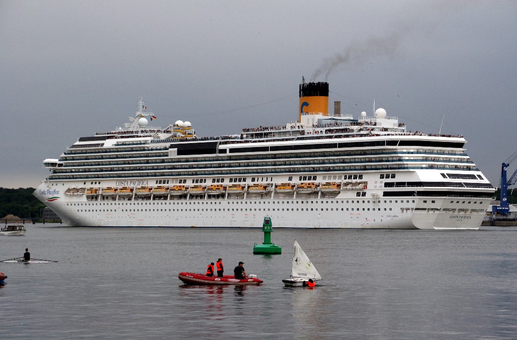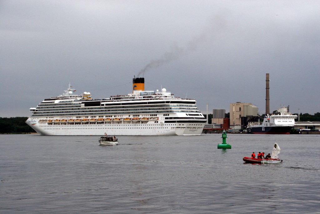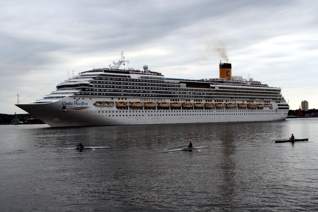 Die "Costa Pacifica" fährt um 18:21h ihr Auslaufmanöver auf der "Kieler Förde"