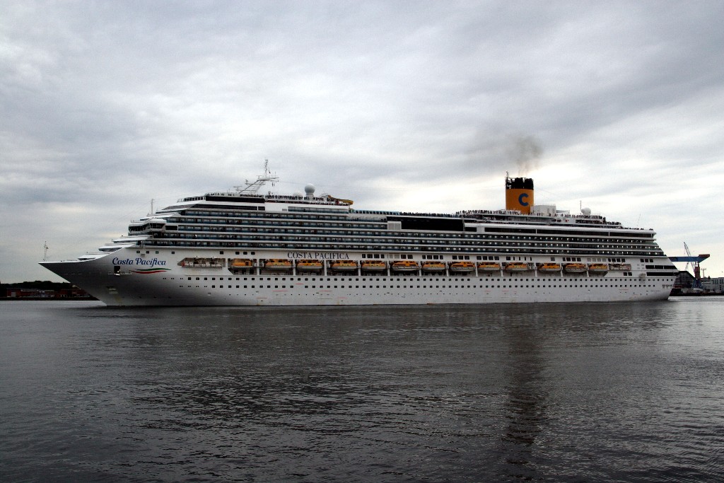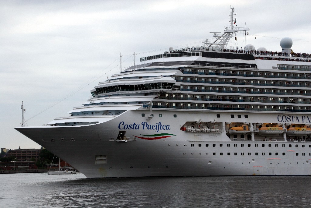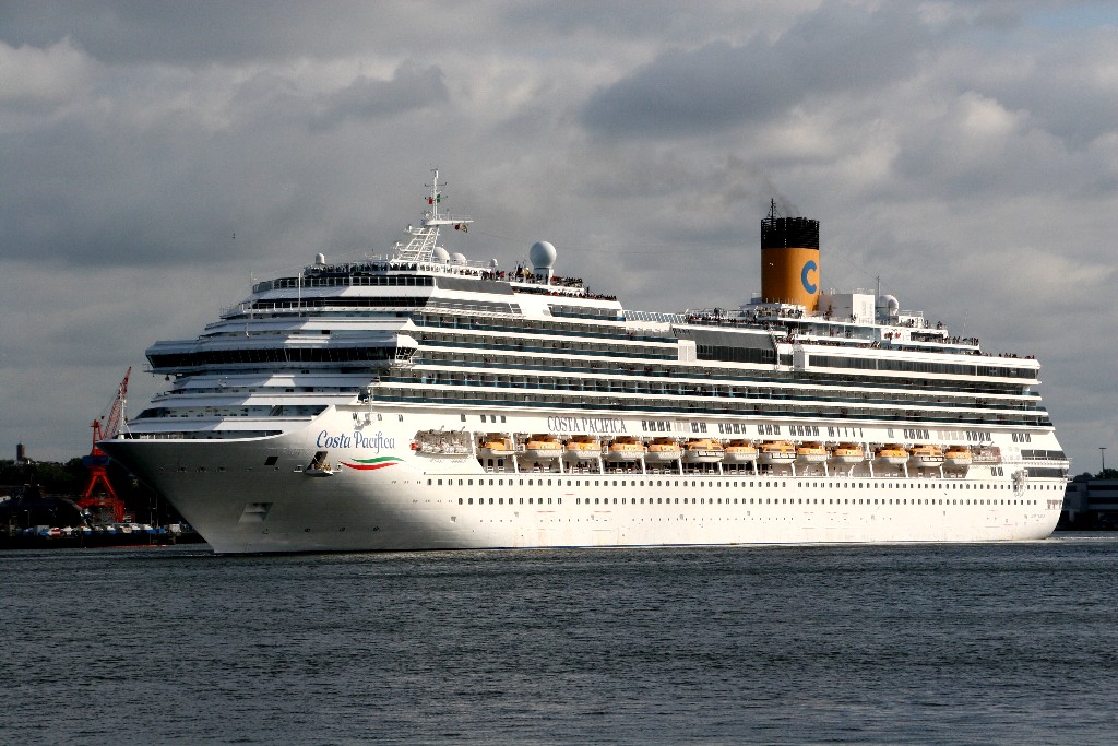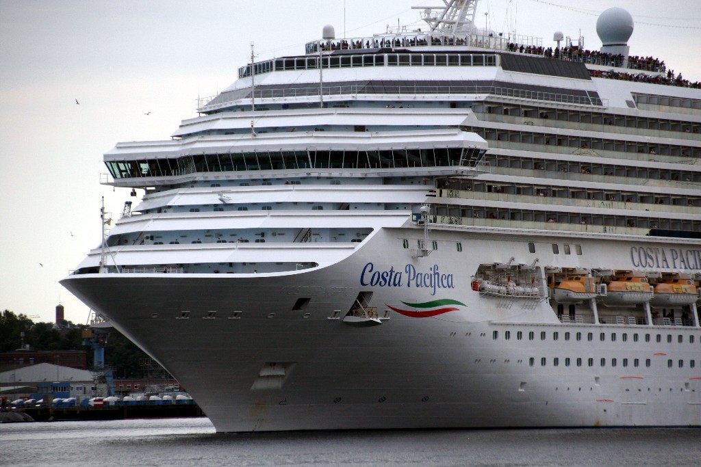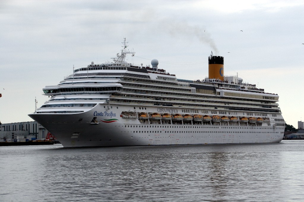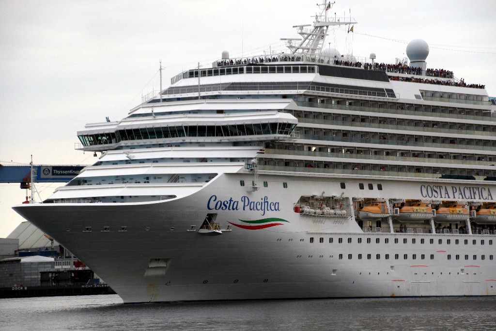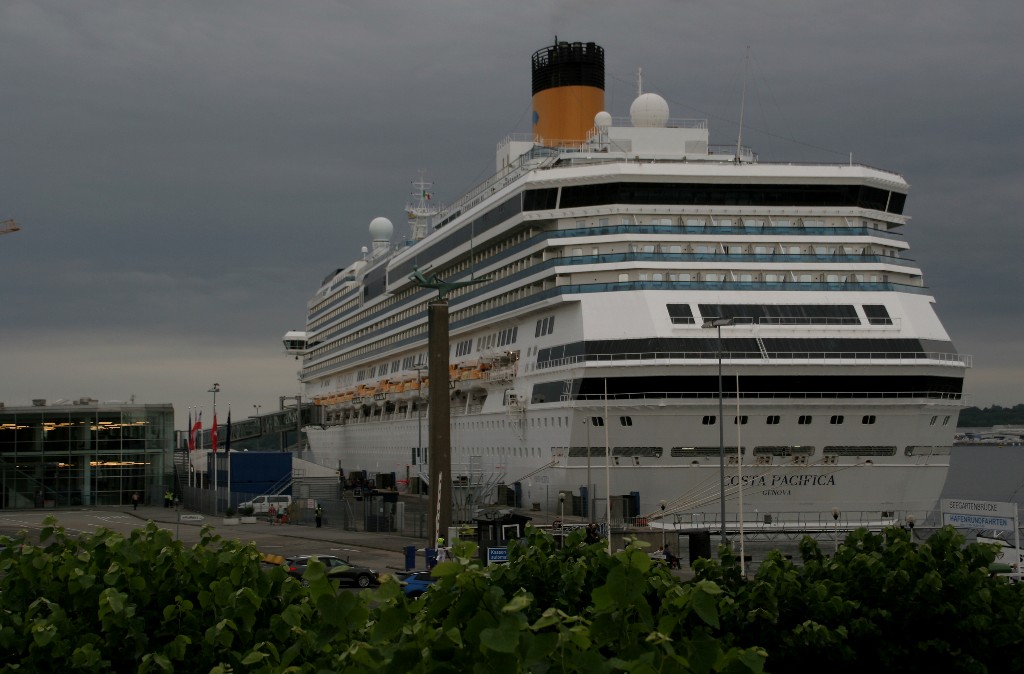 Die "Costa Pacifica" fährt ihr Auslaufmanöver in Höhe der "Artania" am Ostseekai (Liegeplatz 28)