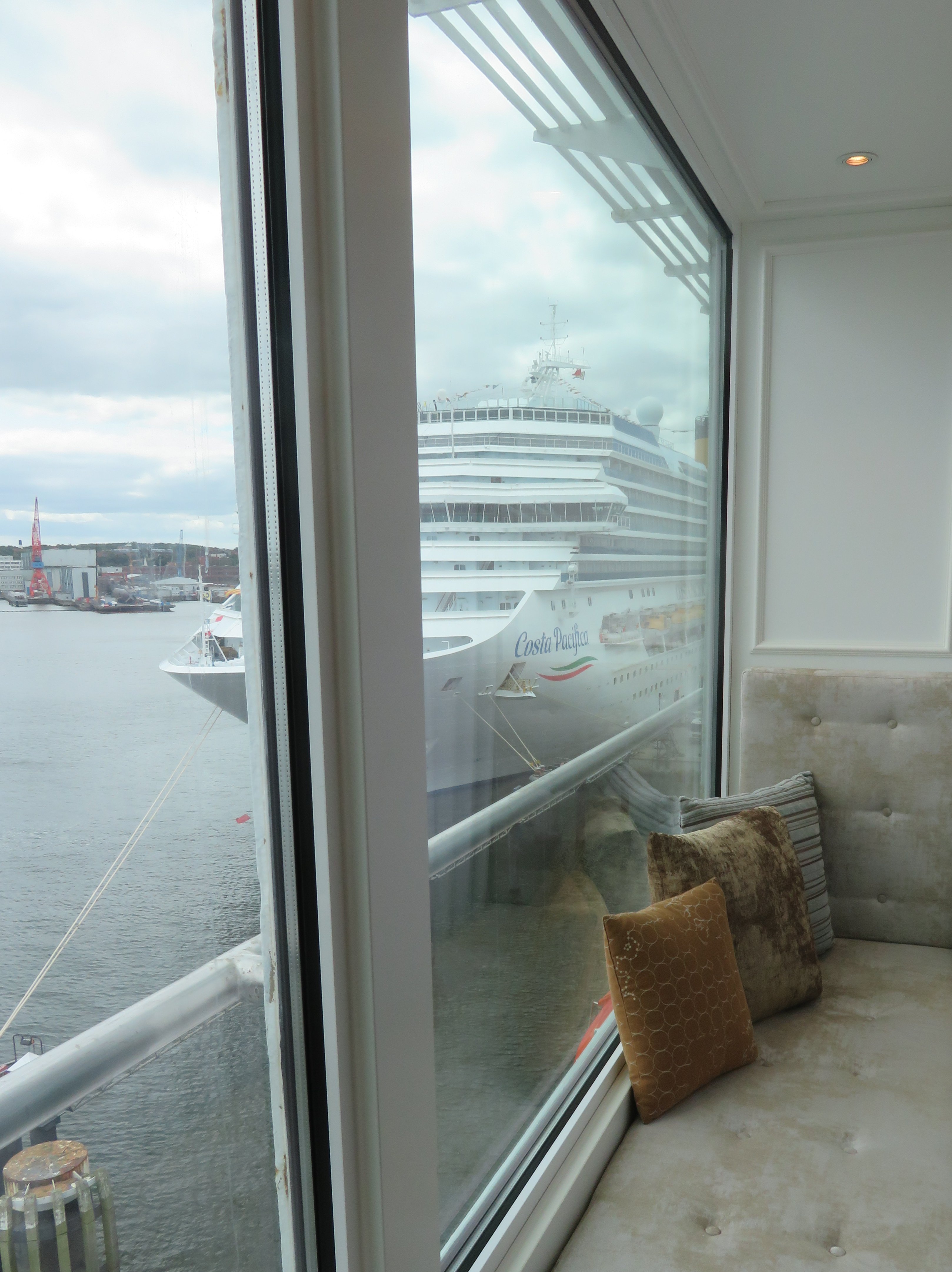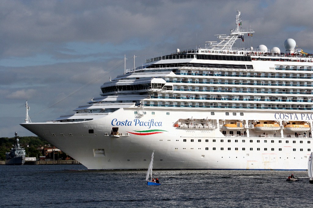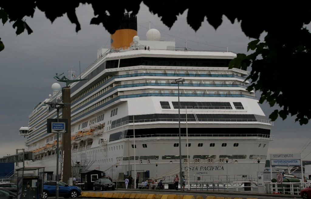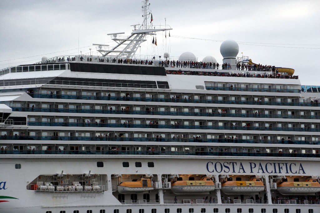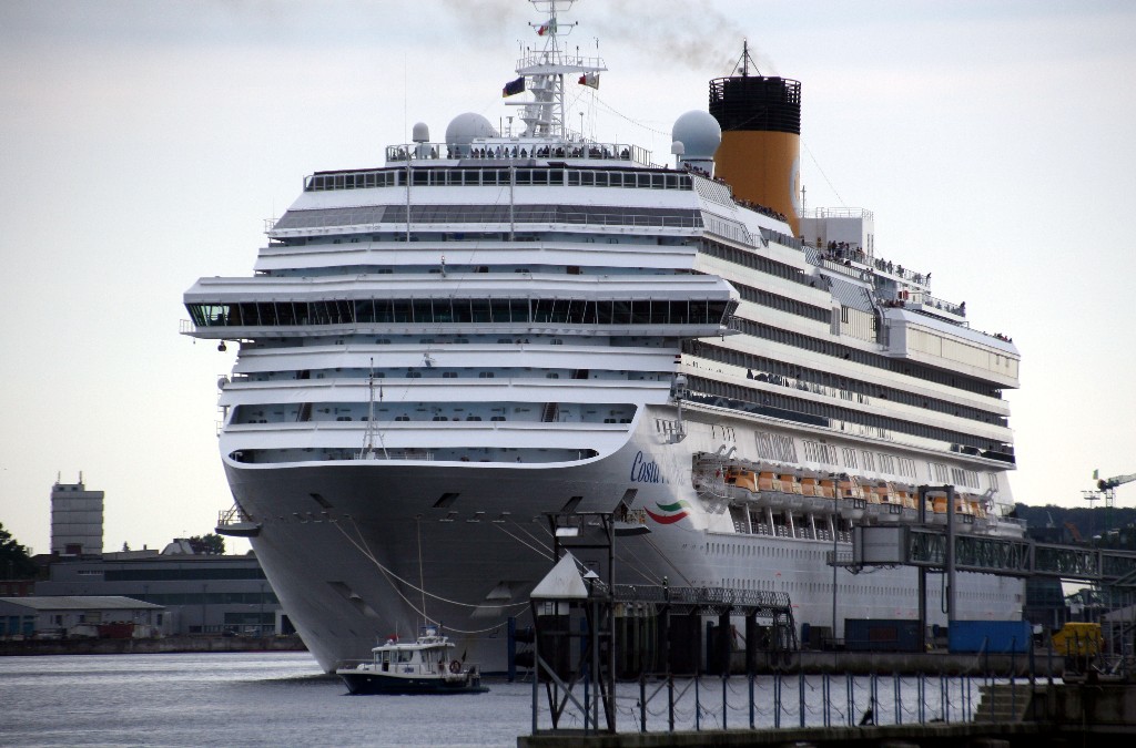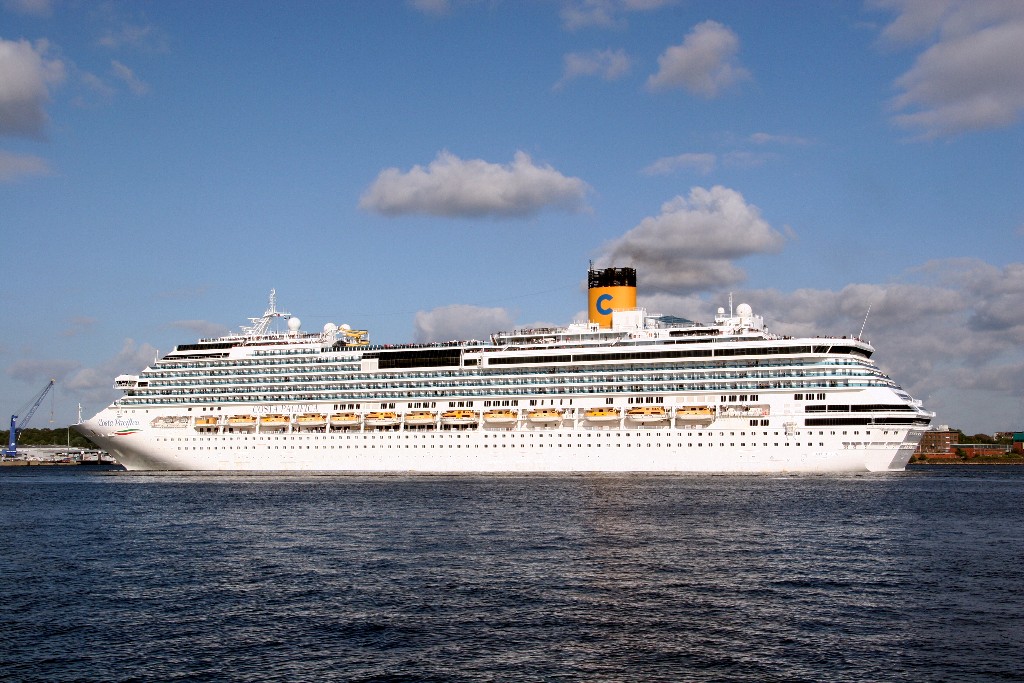 Die "Costa Pacifica" fährt ihr Auslaufmanöver in Höhe der "Artania" am Ostseekai (Liegeplatz 28)