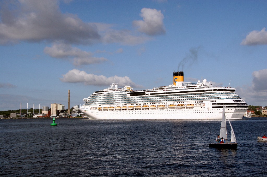 Die "Costa Pacifica" fährt um 18:21h ihr Auslaufmanöver auf der "Kieler Förde"