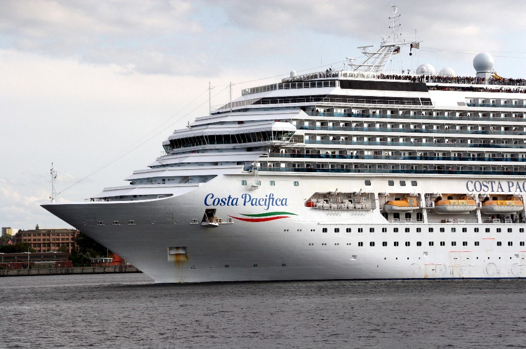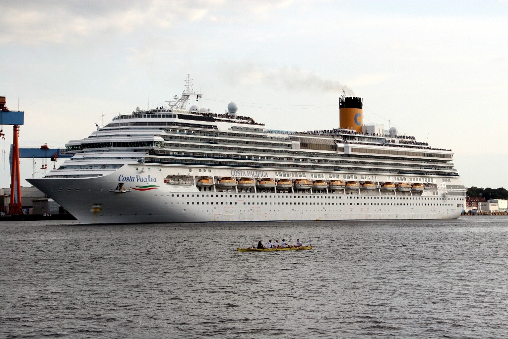 Die "Costa Pacifica" fährt mit einem "Heizergruß" ihre Revierfahrt auf der "Kieler Förde"