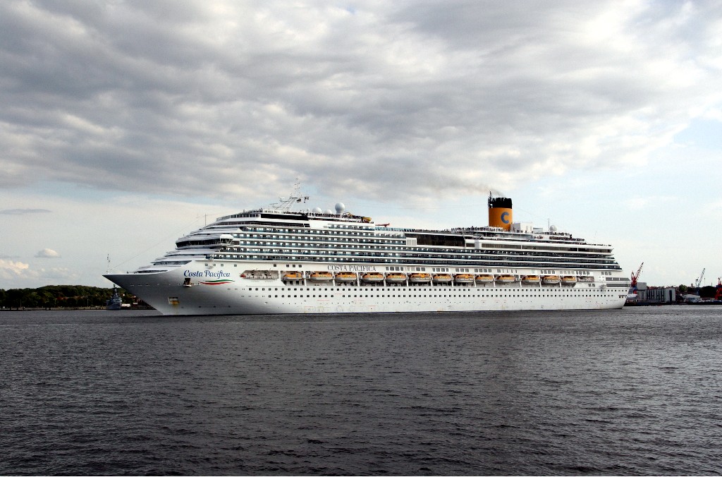 Die "Costa Pacifica" fährt um 17:59h ihr Auslaufnmanöver auf der "Kieler Förde"