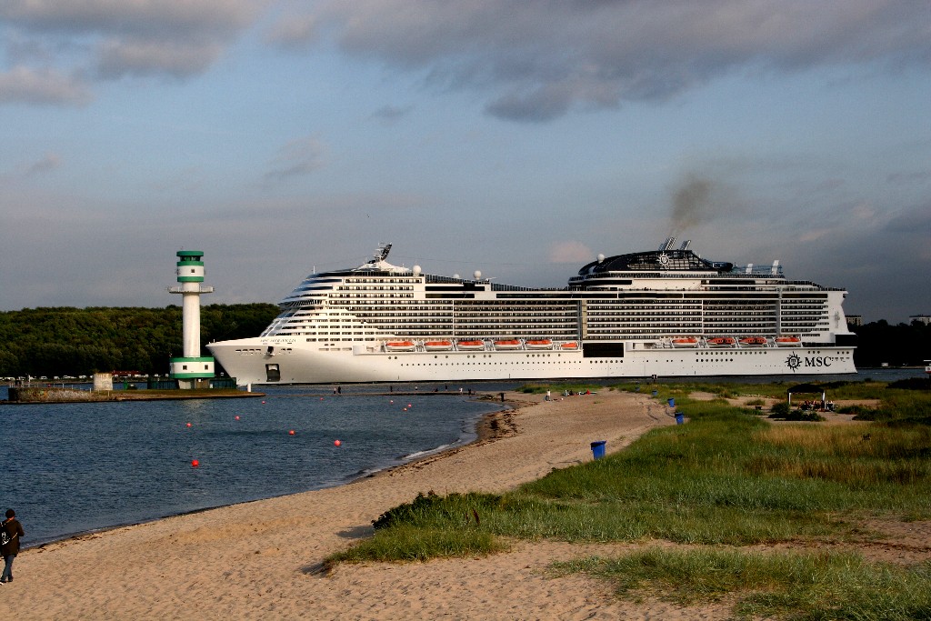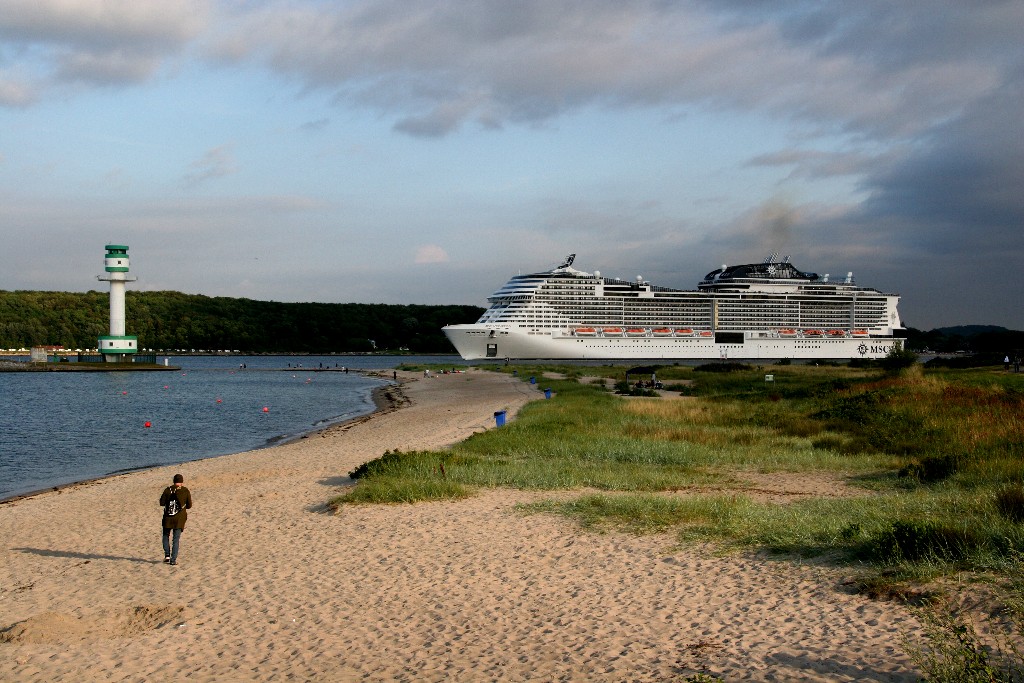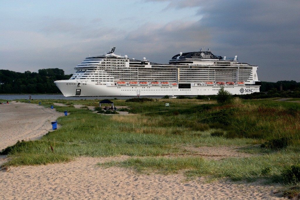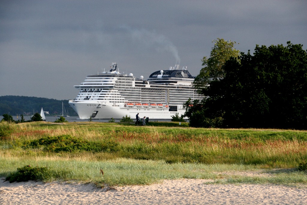Ich habe mir mal am südlichen Ende vom "Falkensteiner Strand" die Revierfahrt der "MSC Meraviglia" auf der "Kieler Förde" angesehen