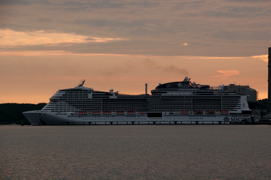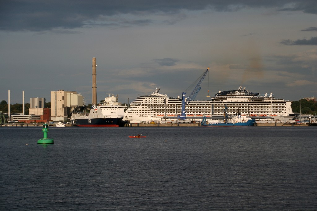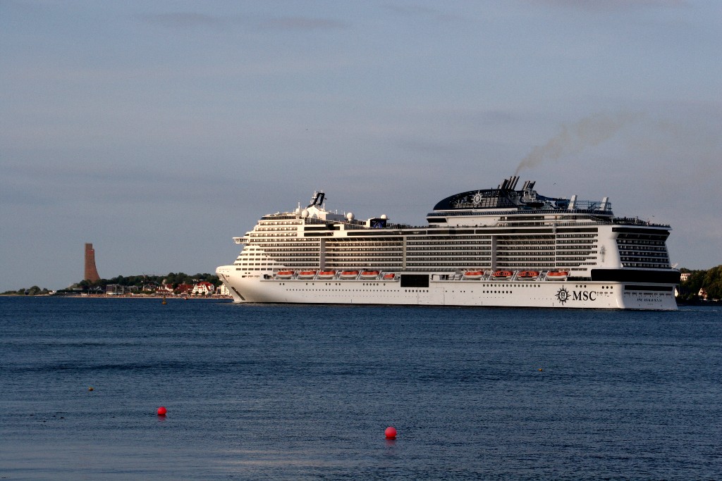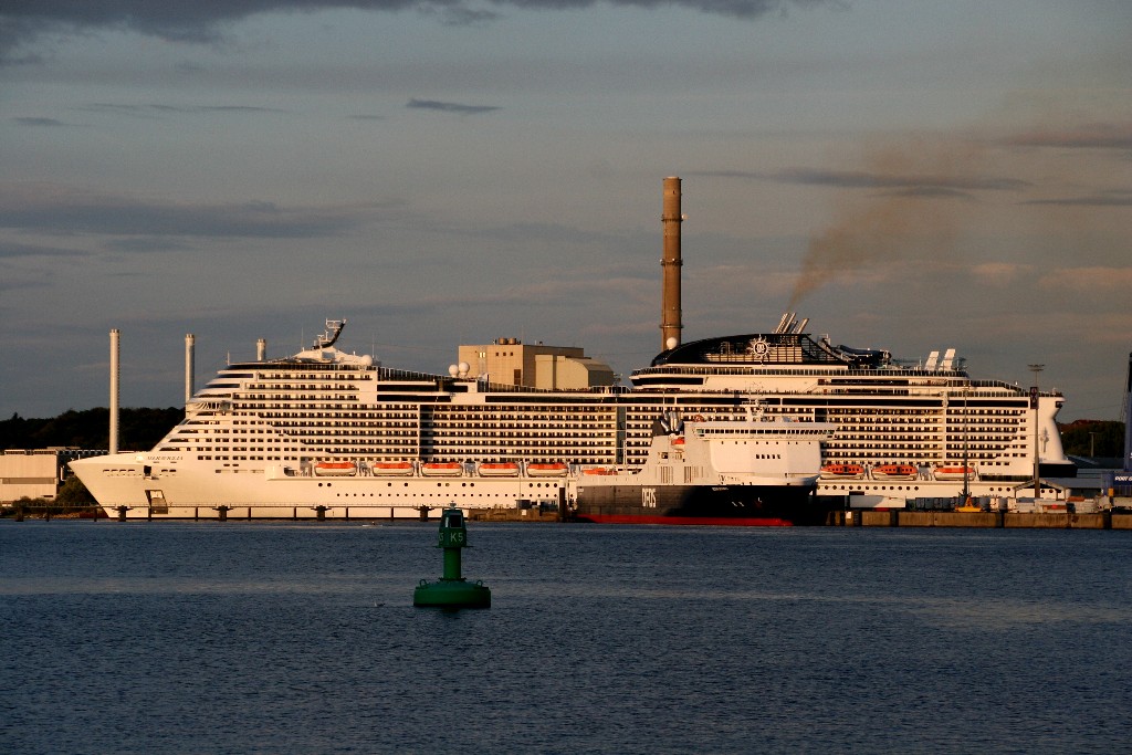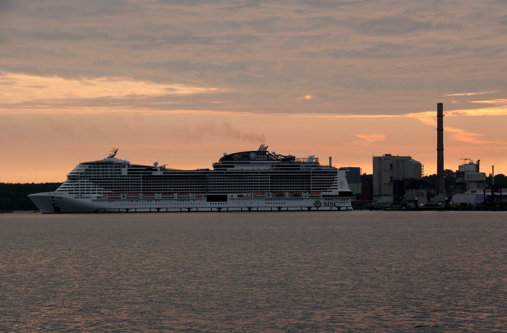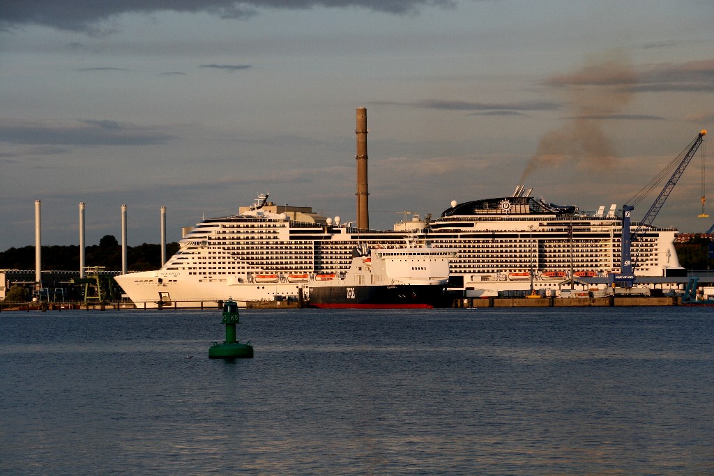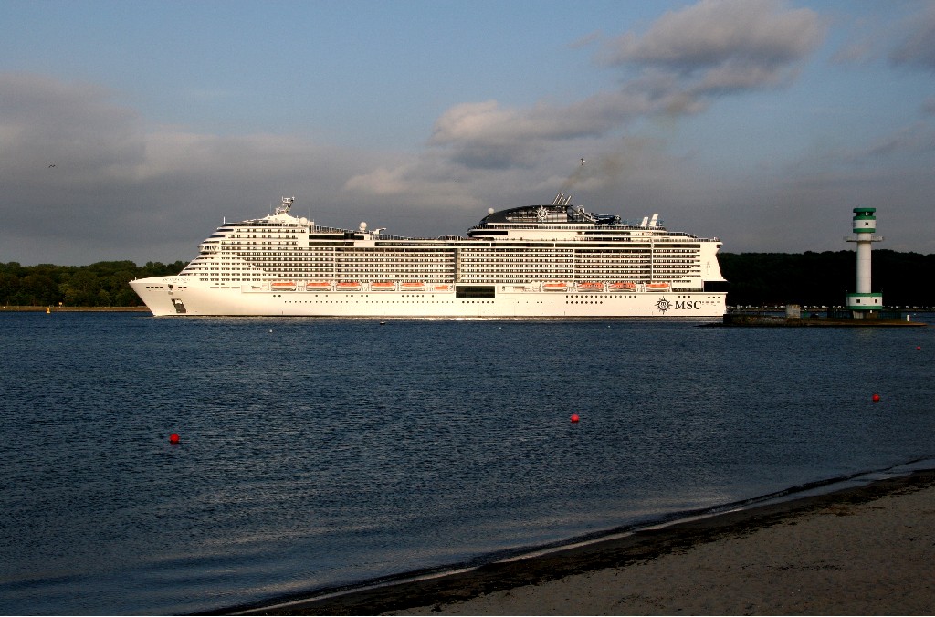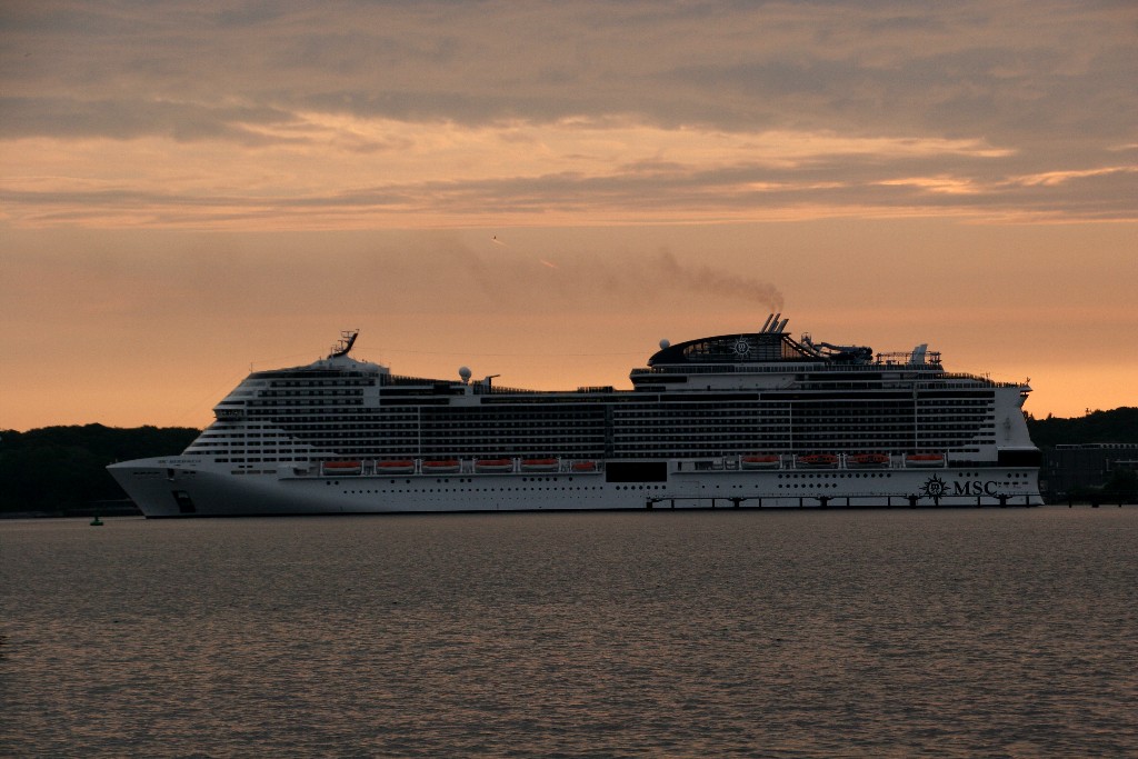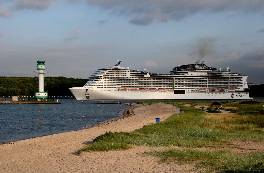 Am südlichen Ende vom "Falkensteiner Strand" habe ich ein traumhaftes Panorama auf die "MSC Meraviglia" während ihrer "Revierfahrt" auf der "Kieler Förde"
