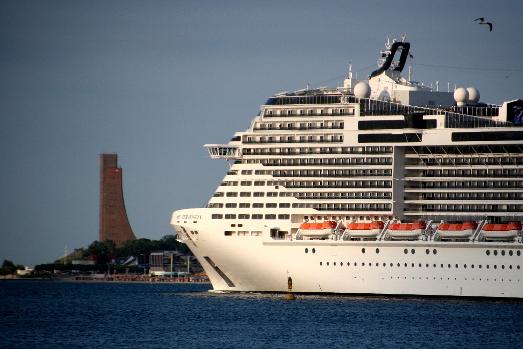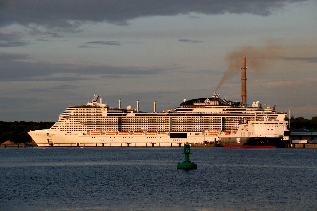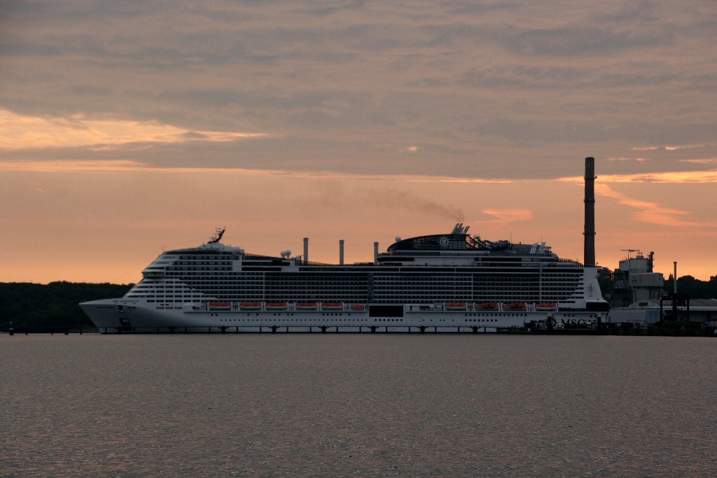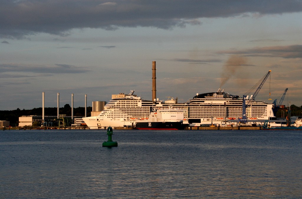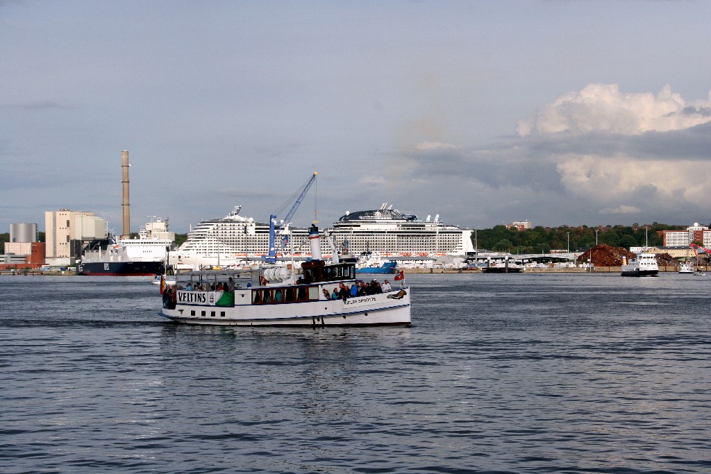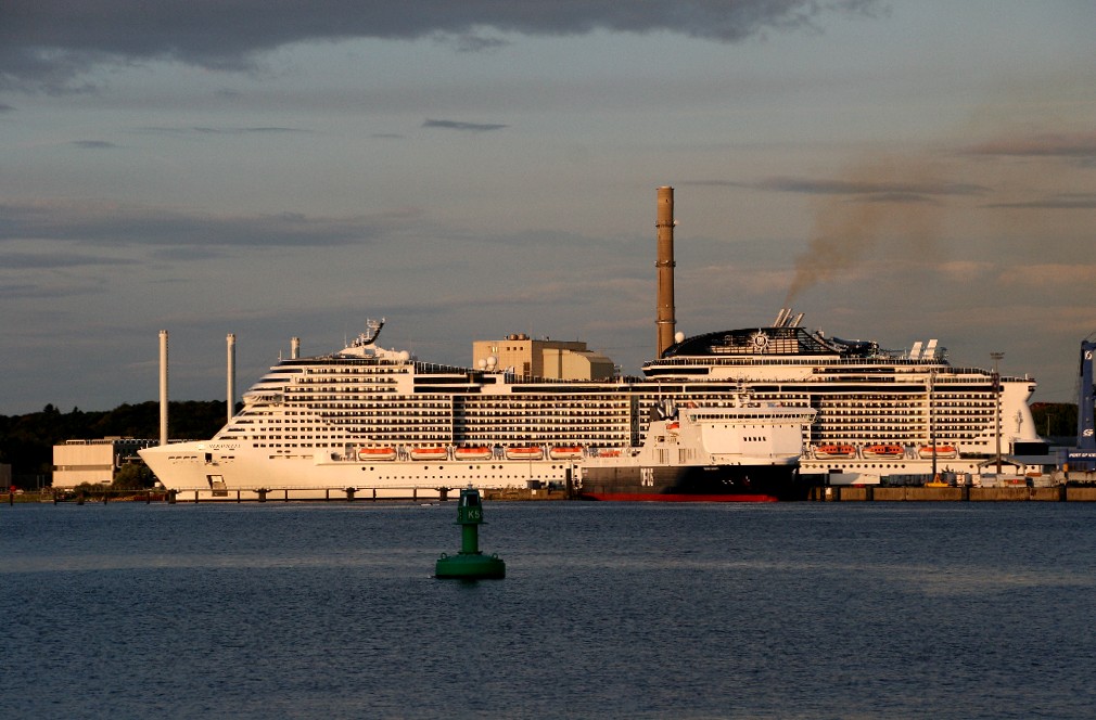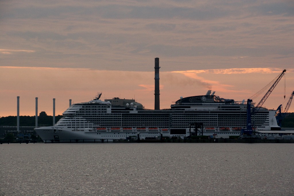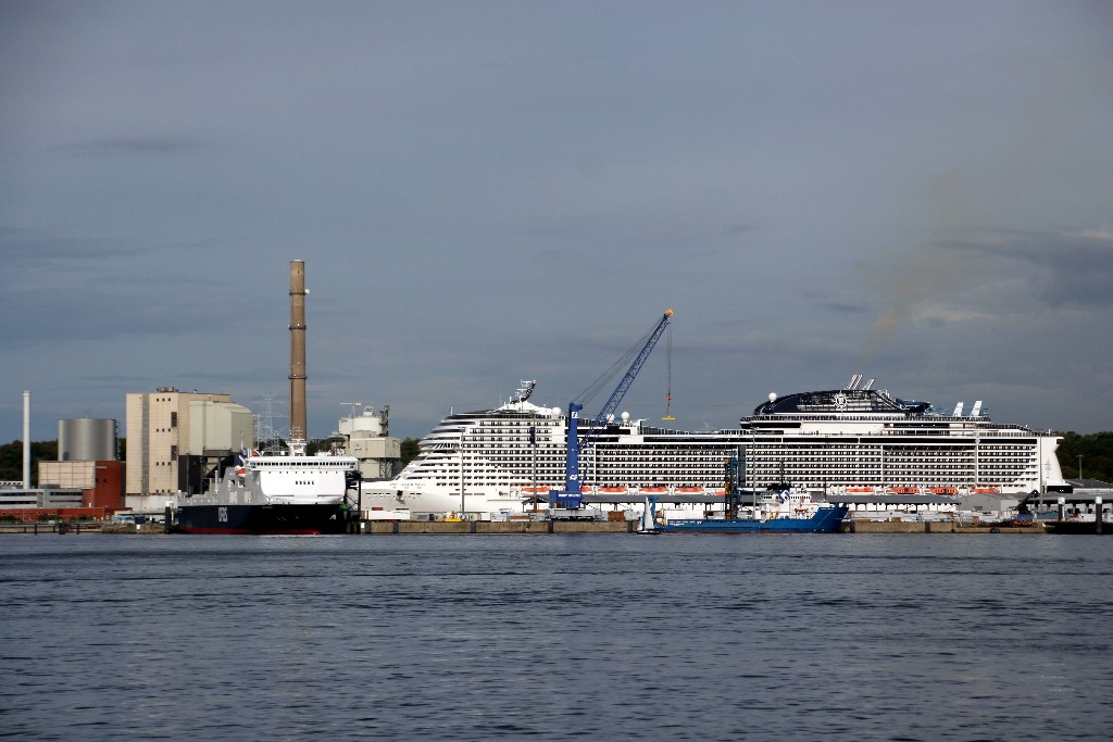 Am südlichen Ende vom "Falkensteiner Strand" habe ich ein traumhaftes Panorama auf die "MSC Meraviglia" während ihrer "Revierfahrt" auf der "Kieler Förde"