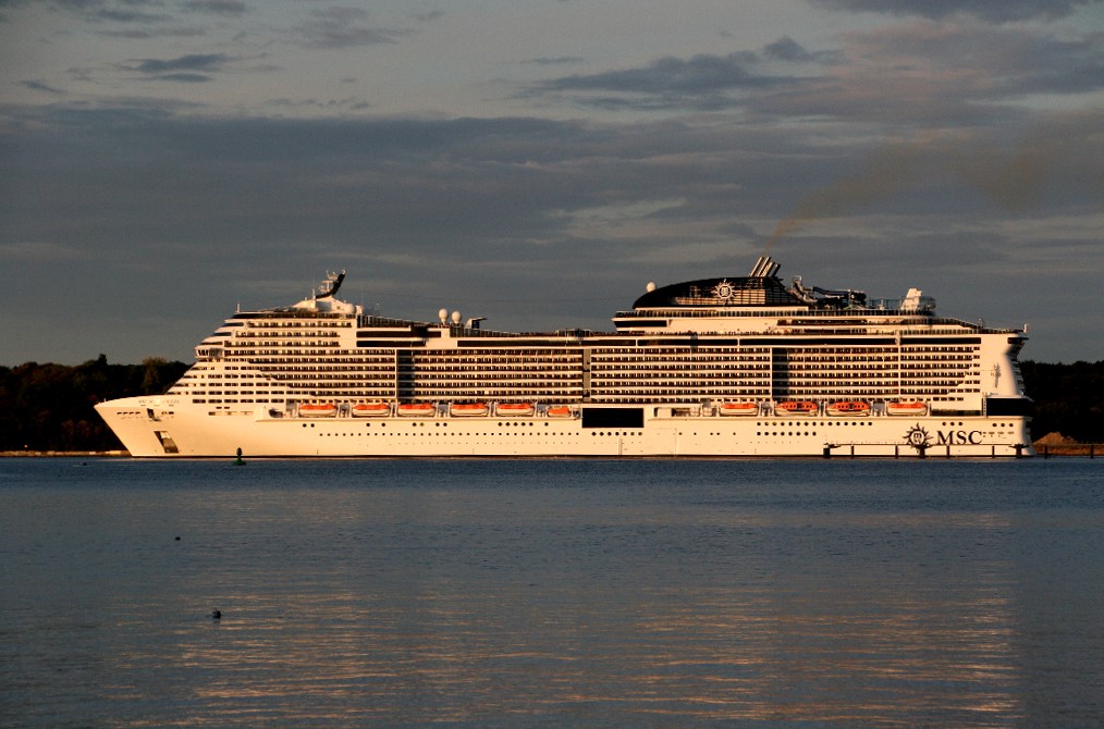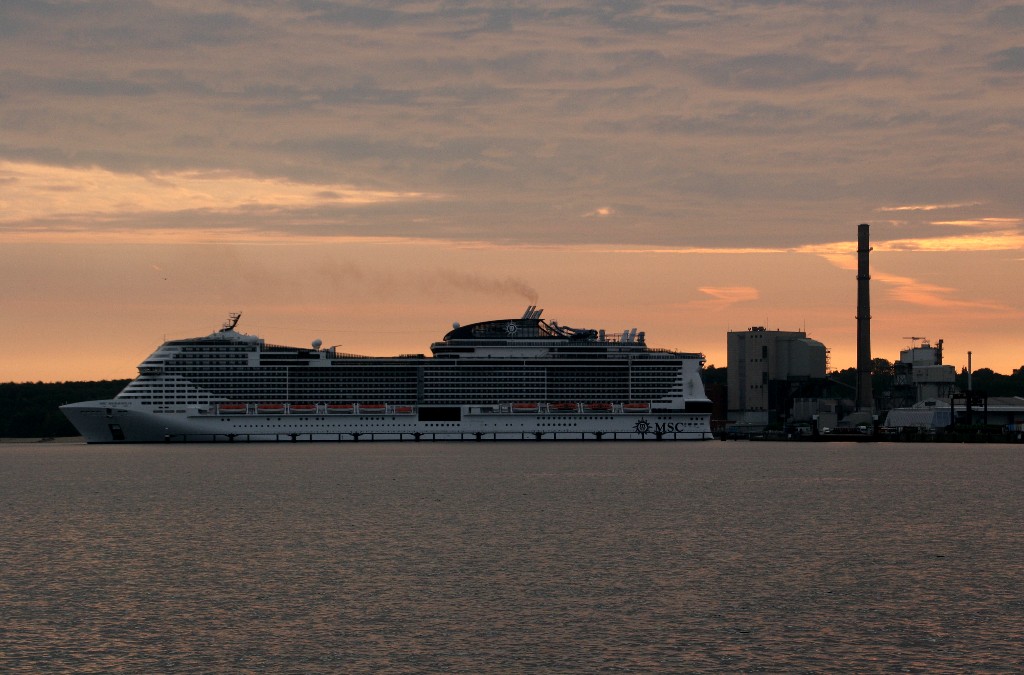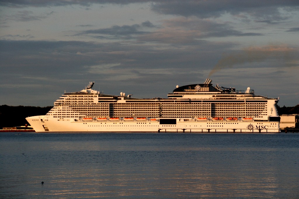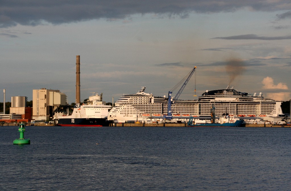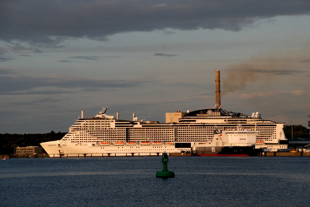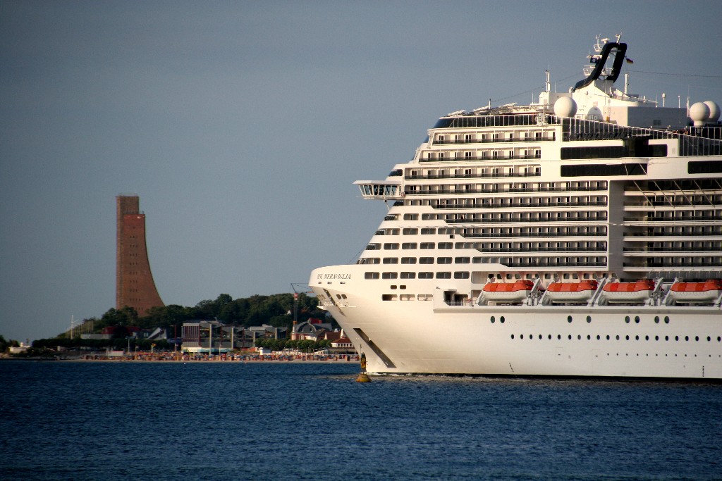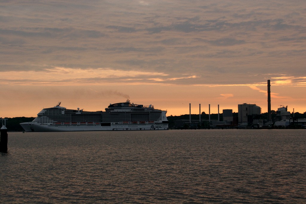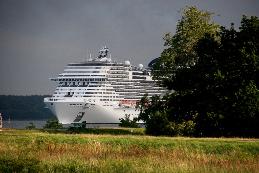 Am südlichen Ende vom "Falkensteiner Strand" habe ich ein traumhaftes Panorama auf die "MSC Meraviglia" während ihrer "Revierfahrt" auf der "Kieler Förde"