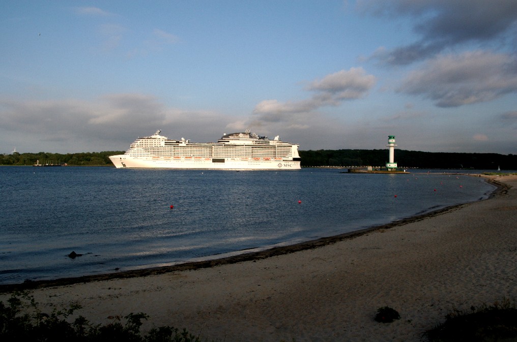 Am südlichen Ende vom "Falkensteiner Strand" habe ich ein traumhaftes Panorama auf die "MSC Meraviglia" während ihrer "Revierfahrt" auf der "Kieler Förde"