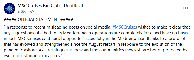 Es sind auch Österreichischer an Bord, also aus einem Risikogebiete nach MSC. Die müssen zu Hause einen Test machen (72 Stunden vorher) und dann den Test wenn sie an Bord gehen. Zwei Tests also. Geht aber auch, man kann mitfahren.