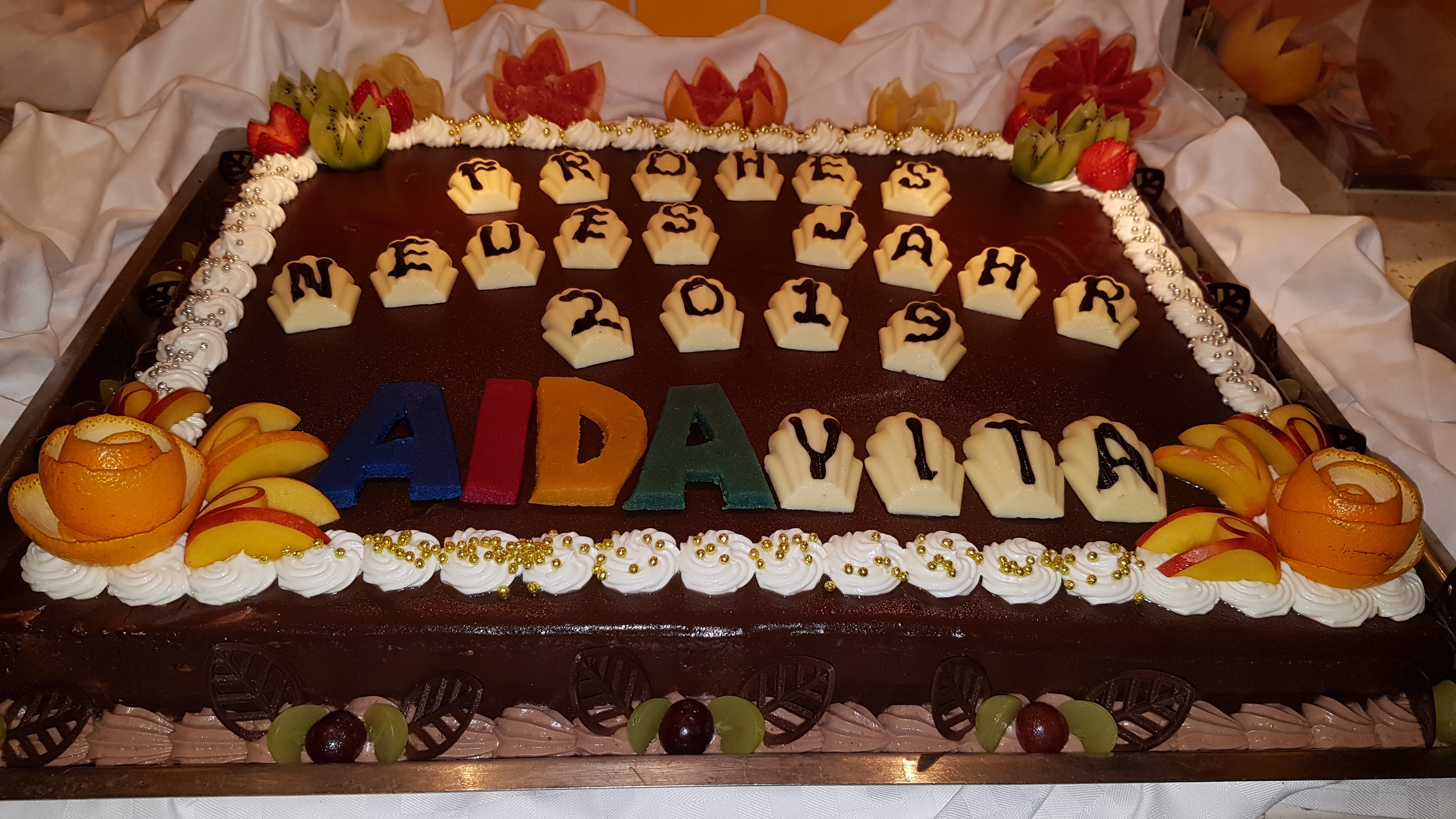 Am Abend wurde einiges geboten, gerade auf dem Pooldeck. Um Mitternacht wurde das Restaurant noch einmal geöffnet und es gab ein super Buffet, das war schon klasse. An abgezählte Krapfen kann ich mich nicht erinnern.