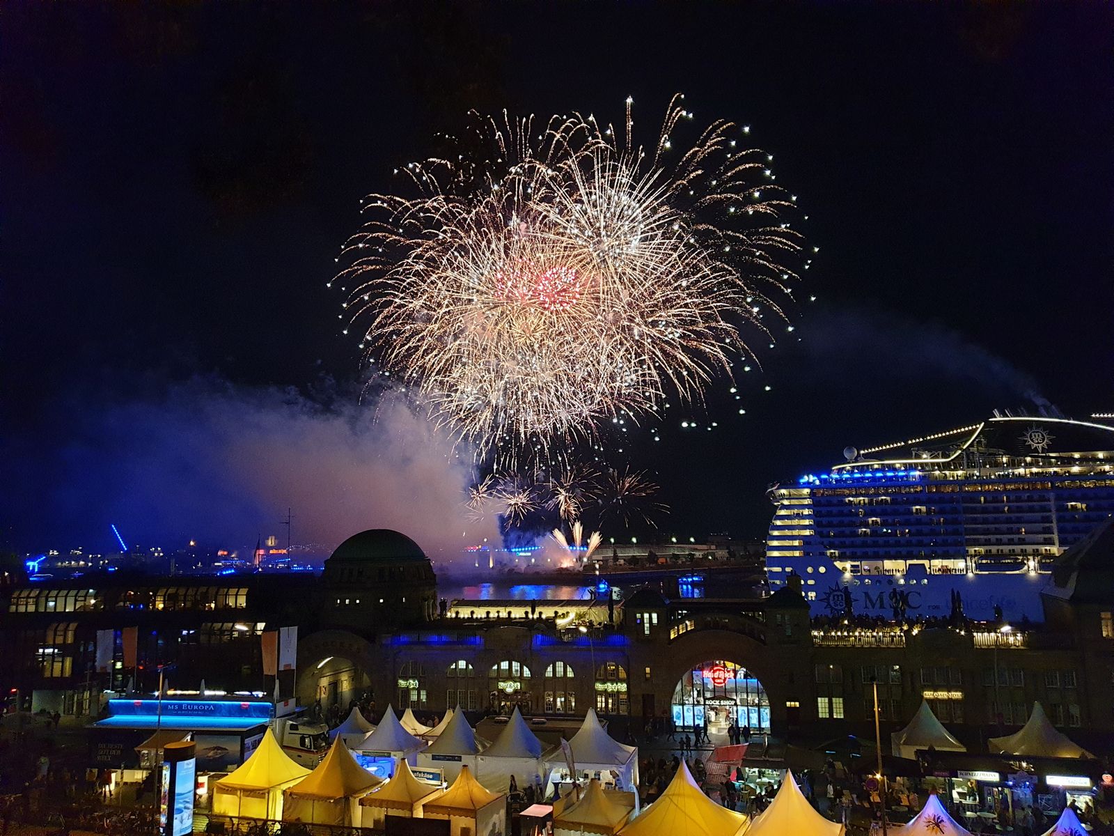 Westlicher als etwa Fischmarkt würde ich mich nicht platzieren, wenn ich vom Geschehen etwas mitkriegen will. Zwischen Elbphilharmonie (und auch deren Aussichtsplattform) und Alter Elbtunnel einschließlich der Landungsbrücken auf gesamter Länge ist mit allergrößtmöglichstem Gedränge zeitlich rund um Feuerwerke zu rechnen. Das Feuerwerk könnte man vielleicht auch vom Dockland-Gebäude beobachten, doch es gibt keine Garantie, daß es zugänglich ist. Interessenten sollten immer berücksichtigen, daß auch und besonders zu maritimen Großevents gefühlt ganz Hamburg "abgesperrt" wird. Besonders abgesehen haben es die Absperrer leider auf die guten Aussichtspunkte. Und ihnen fällt jedes Jahr etwas nettes neues ein, was dann in den Lokalmedien zum Politikum werden kann. Daß Bereiche wegen Überfüllung für weitere Leute ad hoc unzugänglich gemacht werden, versteht sich von selbst.