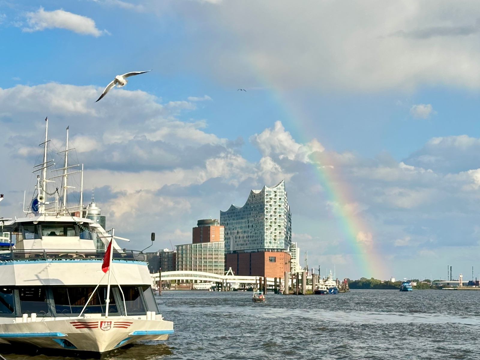 Von Land hatte man schon immer den besseren Blick. Trotzdem bringen auch Begleitfahrten viel Spaß. Wir sind am Sonntag bei bestem Wetter auf der Mare Frisium gefahren und haben die Abschluss Fahrt mitgemacht. Die MSC wurde rückwärts bis zur Elbphilharmonie geschleppt und begeisterte mit der Norwegian Dawn die vielen Zuschauer an Land! Die Feier ging an Land bis 20:00 Uhr.