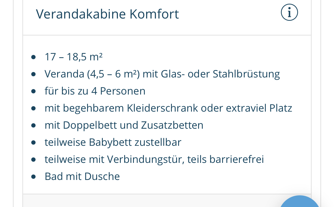 Wenn ich Veranda Kabine Komfort buche, dann sollte die Kabine doch zwischen 22qm&28qm sein, oder? Oder gibt es hier Ausnahmen?