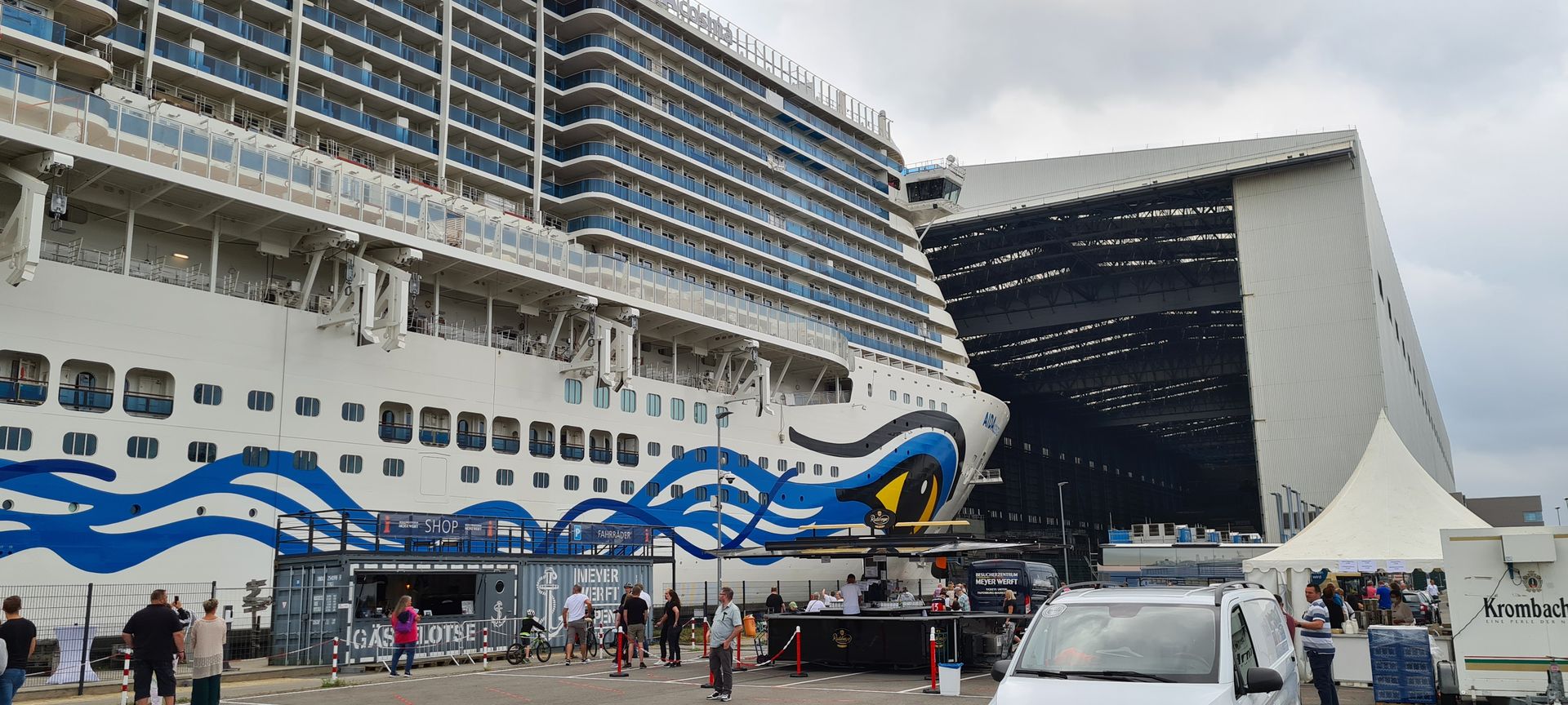 Meyer Werft hatte zuletzt immer eine Webcam live bom vom Dach runter,