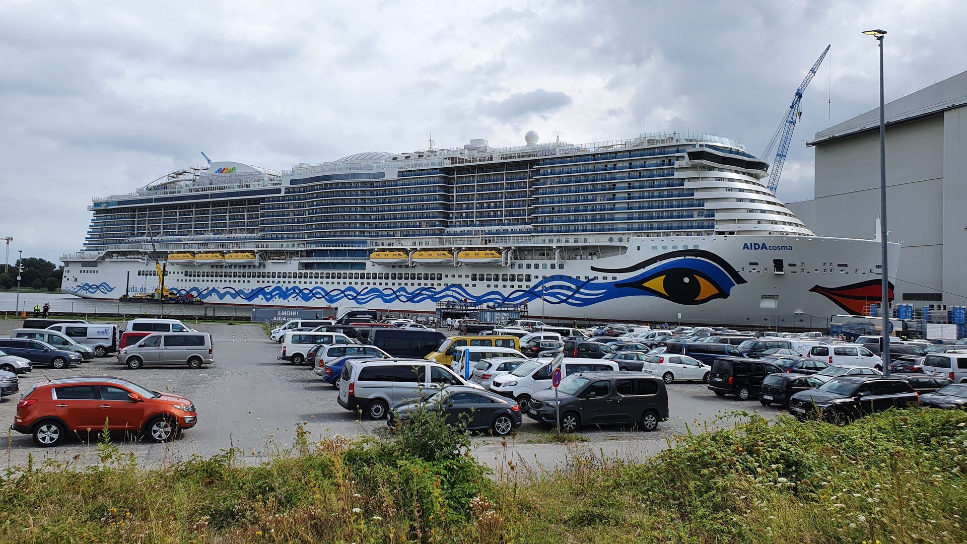 Wir sind gerade mal in Papenburg kurz von der Autobahn abgefahren und haben einen Abstecher zu "Meyer" gemacht. So sieht das gute Stück jetzt aus :