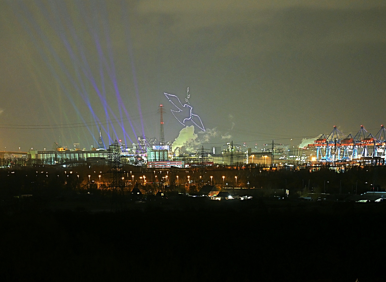 Toll beleuchtet, die "Elphi". Und dann die Lichtspiele der Scheinwerfer.