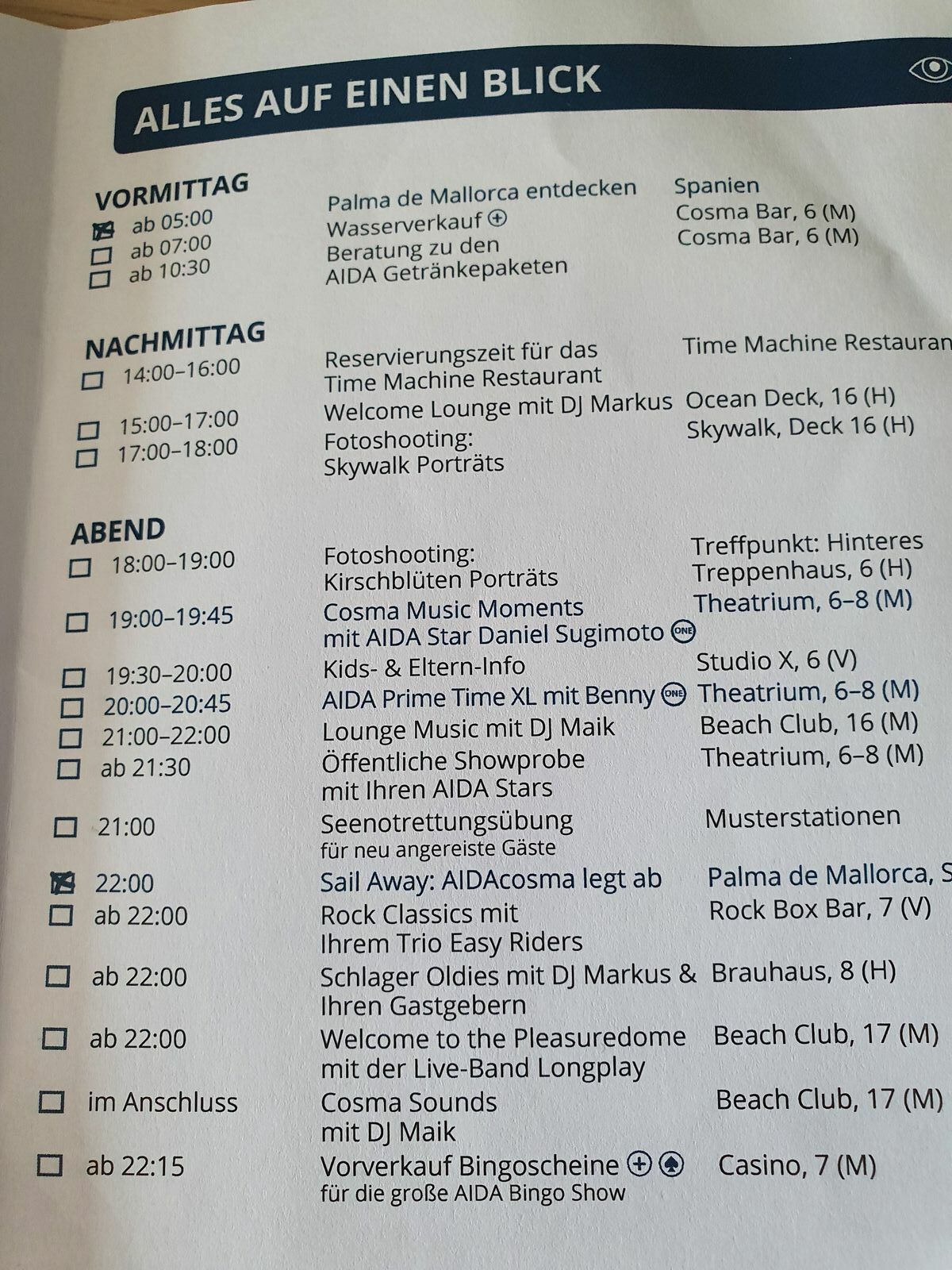 An Wechseltagen wird meistens relativ "wenig" Programm geboten, da die Crew sehr viel mit der Einschiffung zu tun hat. Ist/war auf der Nova auch immer so.