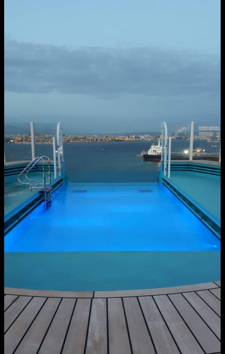 Ich habe gerade ein bisschen nach anderen Aida-Pools geguckt auf Fotos. Da steht das Wasser trotz des Ablaufs schonmal etwas höher.