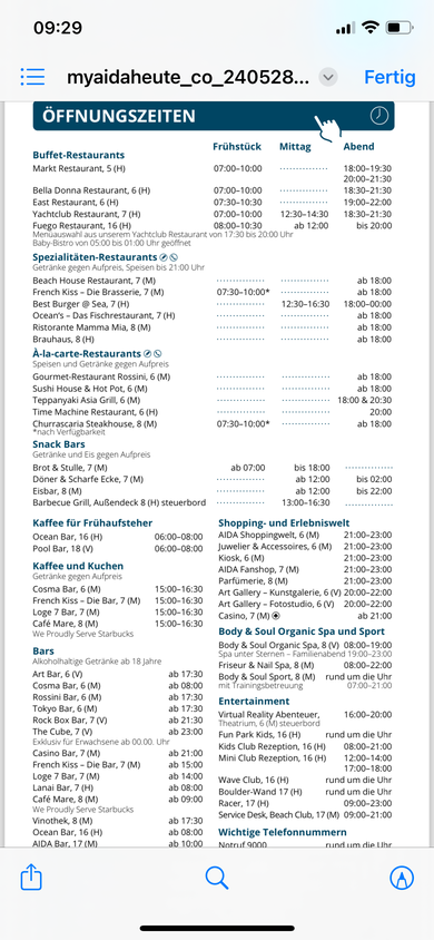 kann mir jemand etwas zu den aktuellen Öffnungszeiten des Fuego sagen? Vielleicht auch ne Aida heute hochladen von einer aktuellen Reise Meditterane Hightlights?