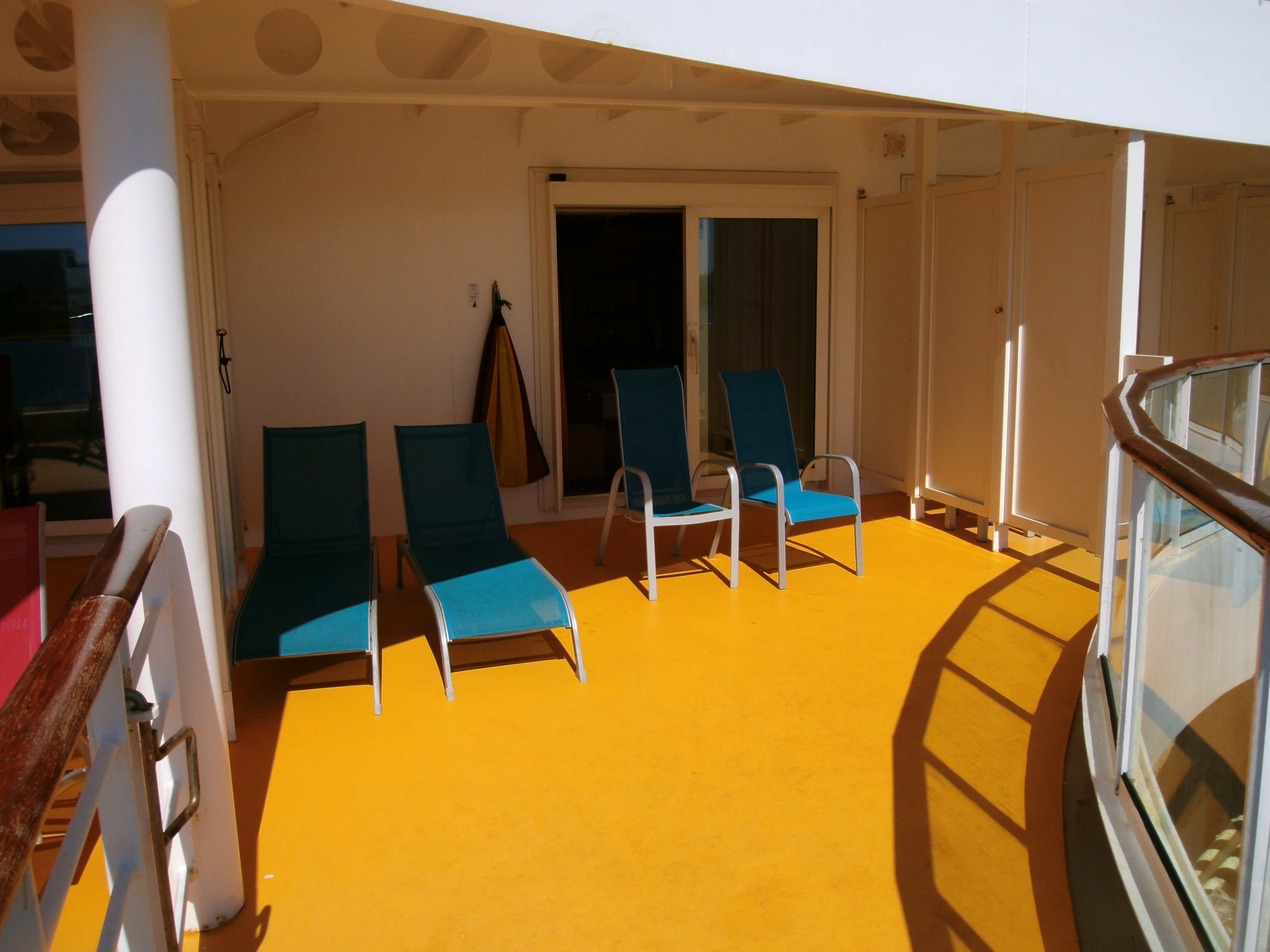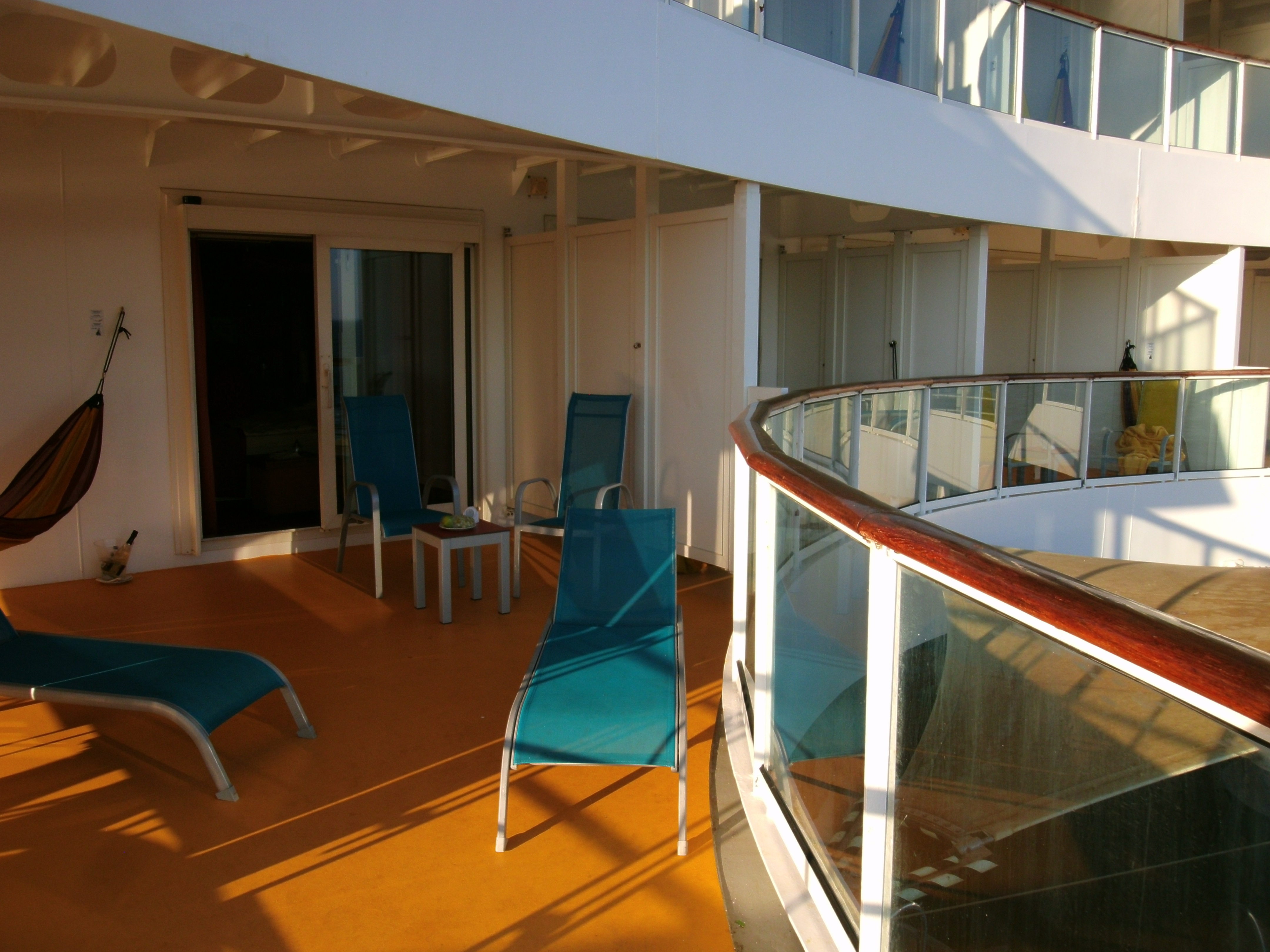 ...und wenn ihr Premium bucht, sucht euch eine schöne Heck Kabine mit riesigen, windgeschützten Balkon aus...Deck 8, zb die 8177.
