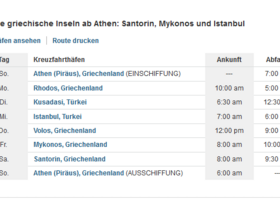 8 Häfen in 7 Tagen, das ist echt sportlich von NCL. Aber die Liegezeit in Patmos (18:30-22:30h) muss man nicht verstehen, oder?