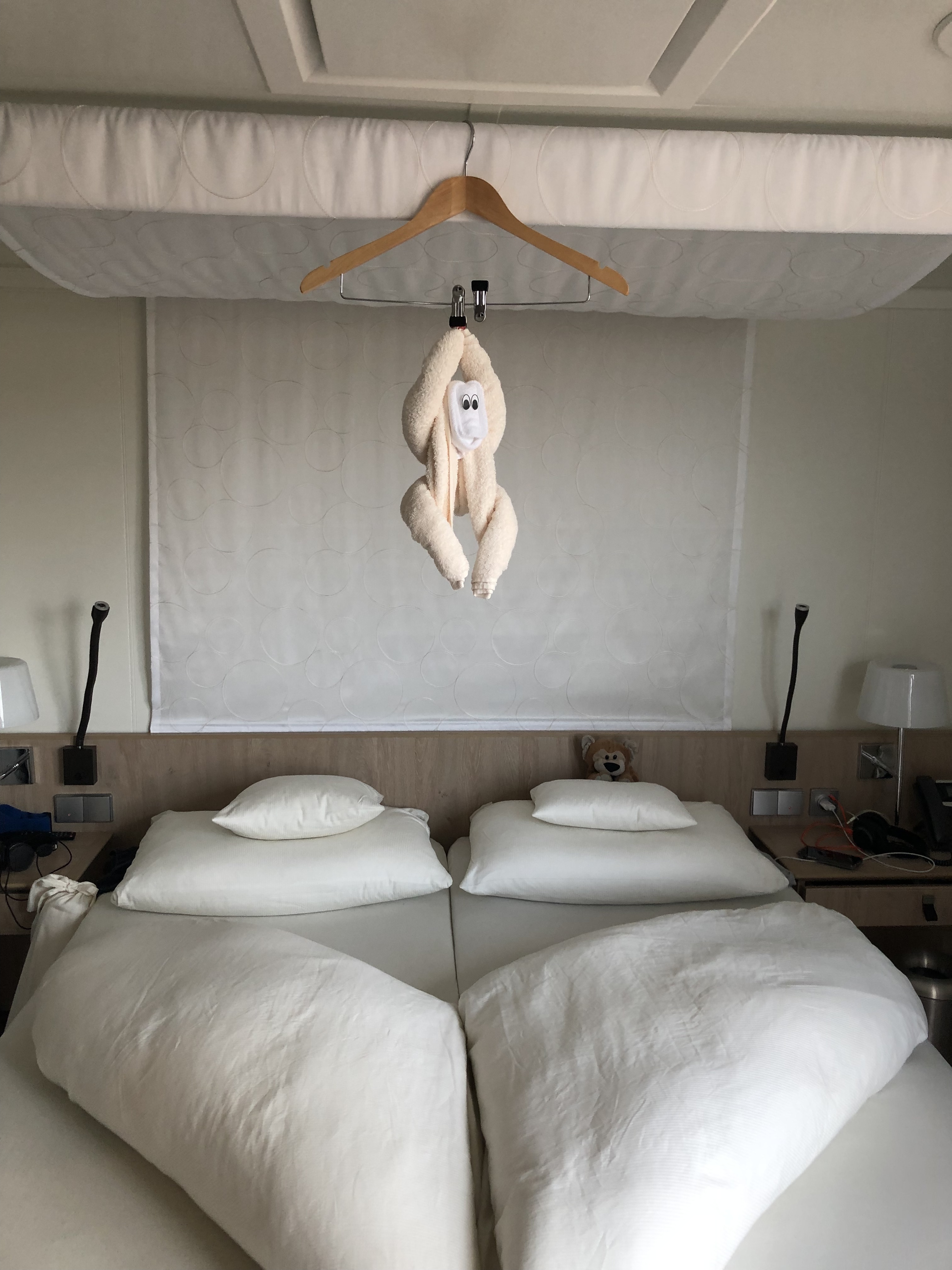 Perfekt eingerichtete Kabine mit perfektem Service, in der Tat ist der Balkon bei Fahrt nur bedingt nutzbar und die Tür bleibt nicht offen.