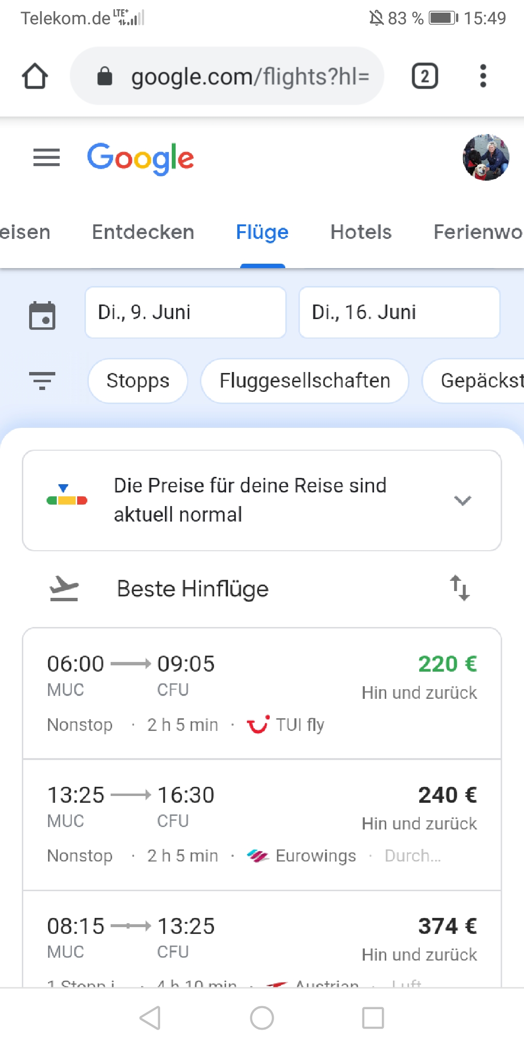 Bei uns geht es speziell um die Rückreise, da wir die Transreise von Mallorca nach Korfu gebucht haben,