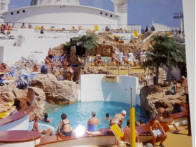 Alles war recht großzügig gestaltet auf der Blu, z. B. die zwei Pools, und dazwischen das Rundell für das Show Ensemble. L. G. Jenny