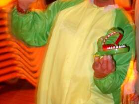 Joe im Kroko-Kostüm und mit "Arbeitsgerät". (Bild leider verwackelt.)
