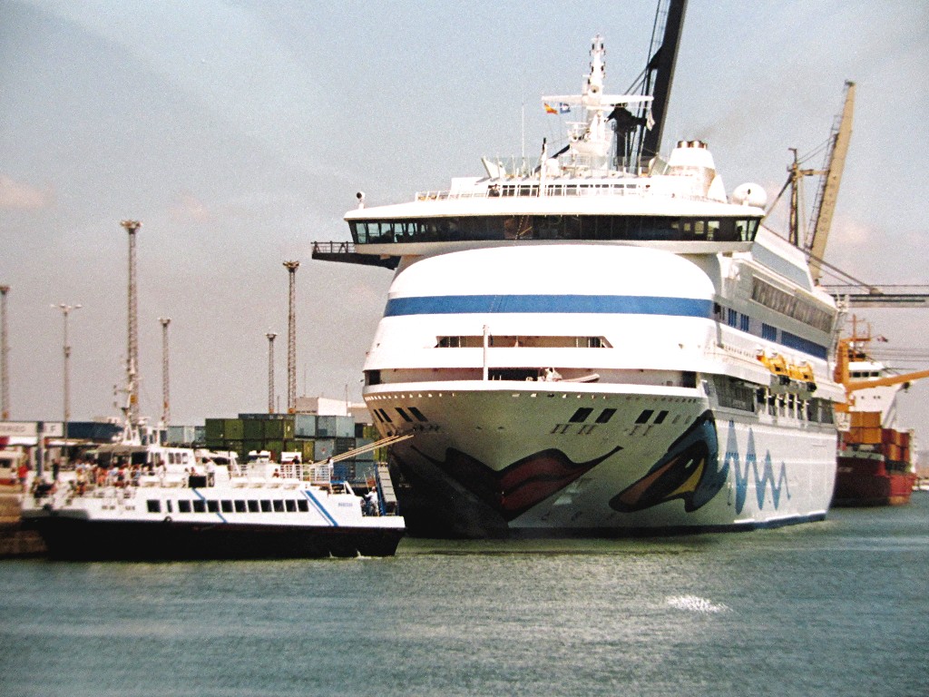 nach den nostalgischen Bildern von der AIDAvita an ihrem Liegeplatz im Hafen von "Ajaccio" aus dem Juni 2003, gibt es jetzt noch nostalgische Bilder von der AIDAvita an ihrem Liegeplatz im Hafen von "Cadiz" aus dem August 2003