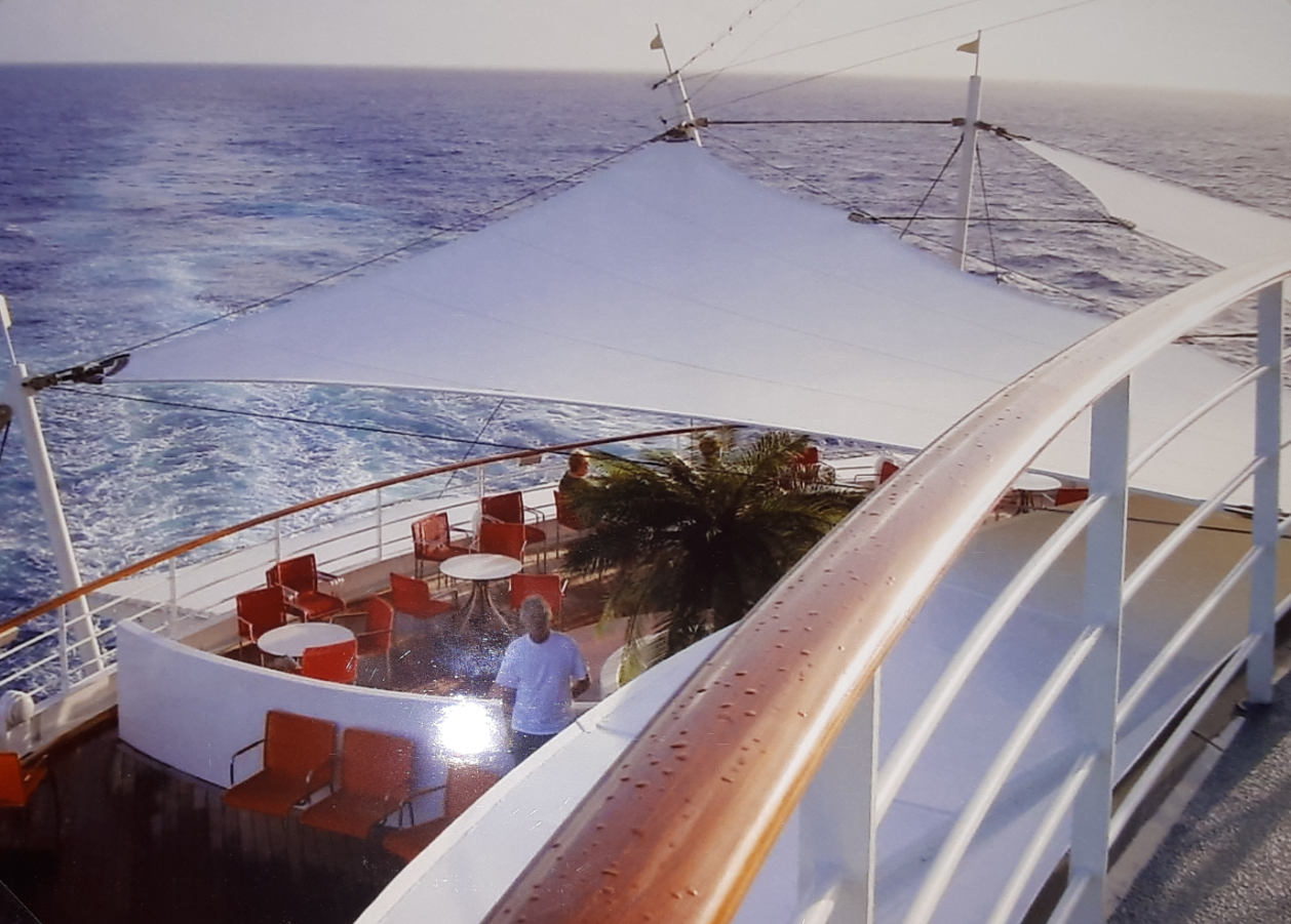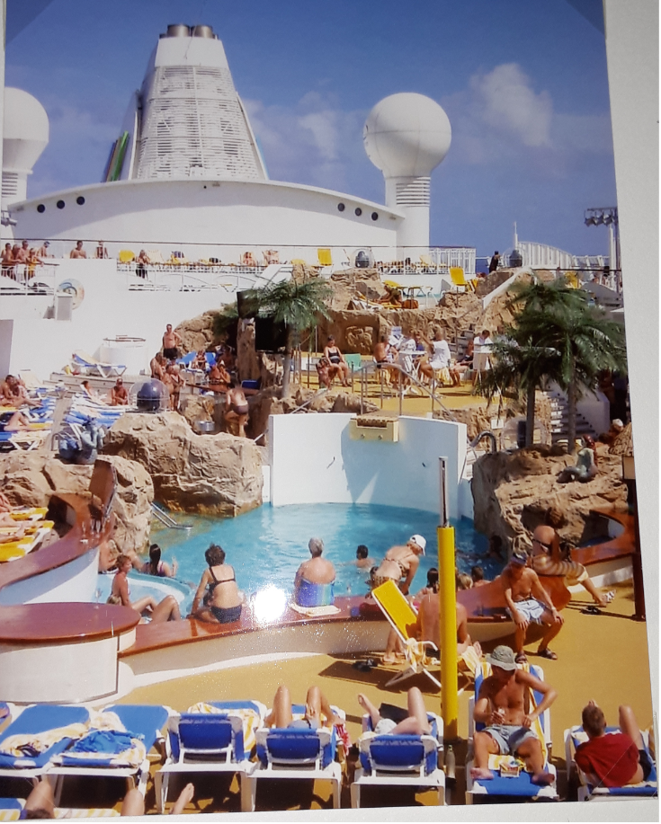 Alles war recht großzügig gestaltet auf der Blu, z. B. die zwei Pools, und dazwischen das Rundell für das Show Ensemble. L. G. Jenny