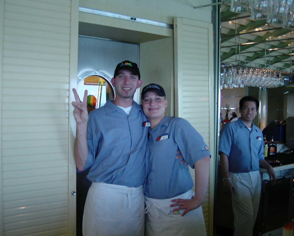 Chiefpurser "Michaela" und Chefanimateur "Ninette" im Juli 2000 auf der "AIDA"