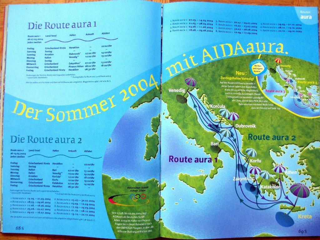 Hier gibt es jetzt ein nostalgisches Bild der "Vorderseite" vom "AIDA-Katalog" Sommer 2004,es gibt auch noch ein nostalgisches Bild der speziellen "Rückseite" vom "AIDA-Katalog" Sommer 2004 (siehe das 4.untere Bild)