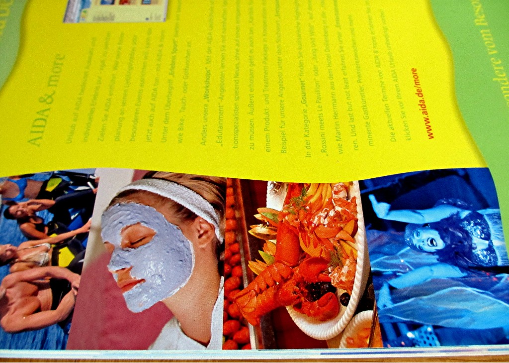 Die nostalgischen "AIDA Kataloge" waren noch sehr dünn (siehe den schmalen,weißen Streifen unter den Bildern)