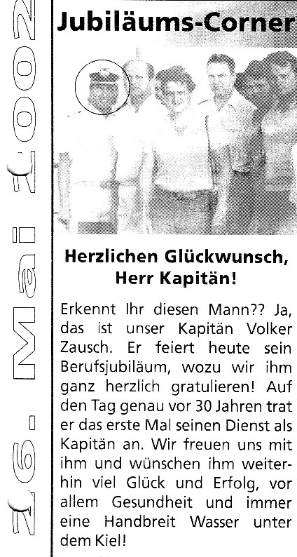 Ich durfte in den Jahren 2000 , 2002 , 2003 .2006 , mit Kapitän Zausch zur See fahren