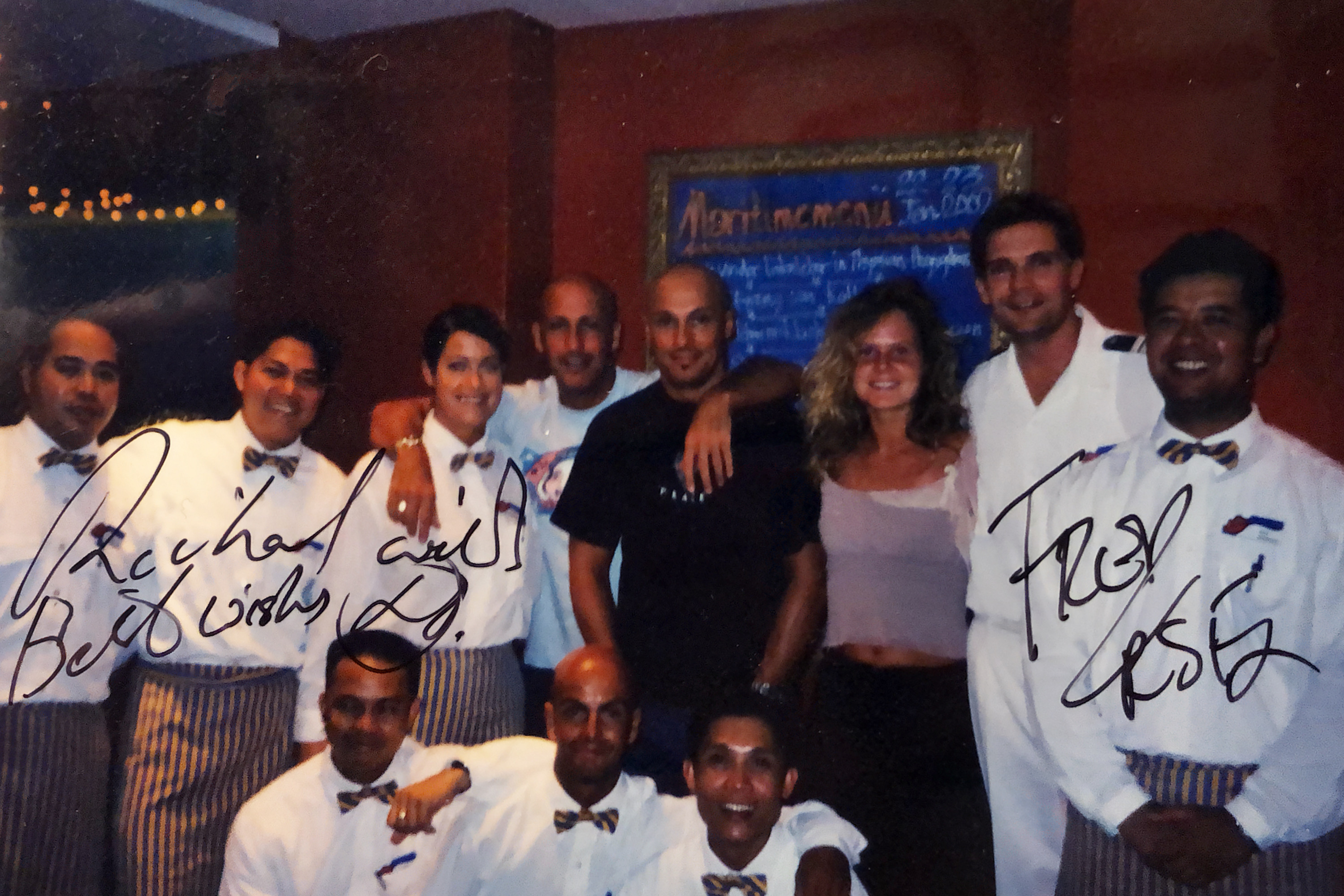 vorne: (Animationsleiter, Östterreich), Purser Moni, Guliermo (Barchef)