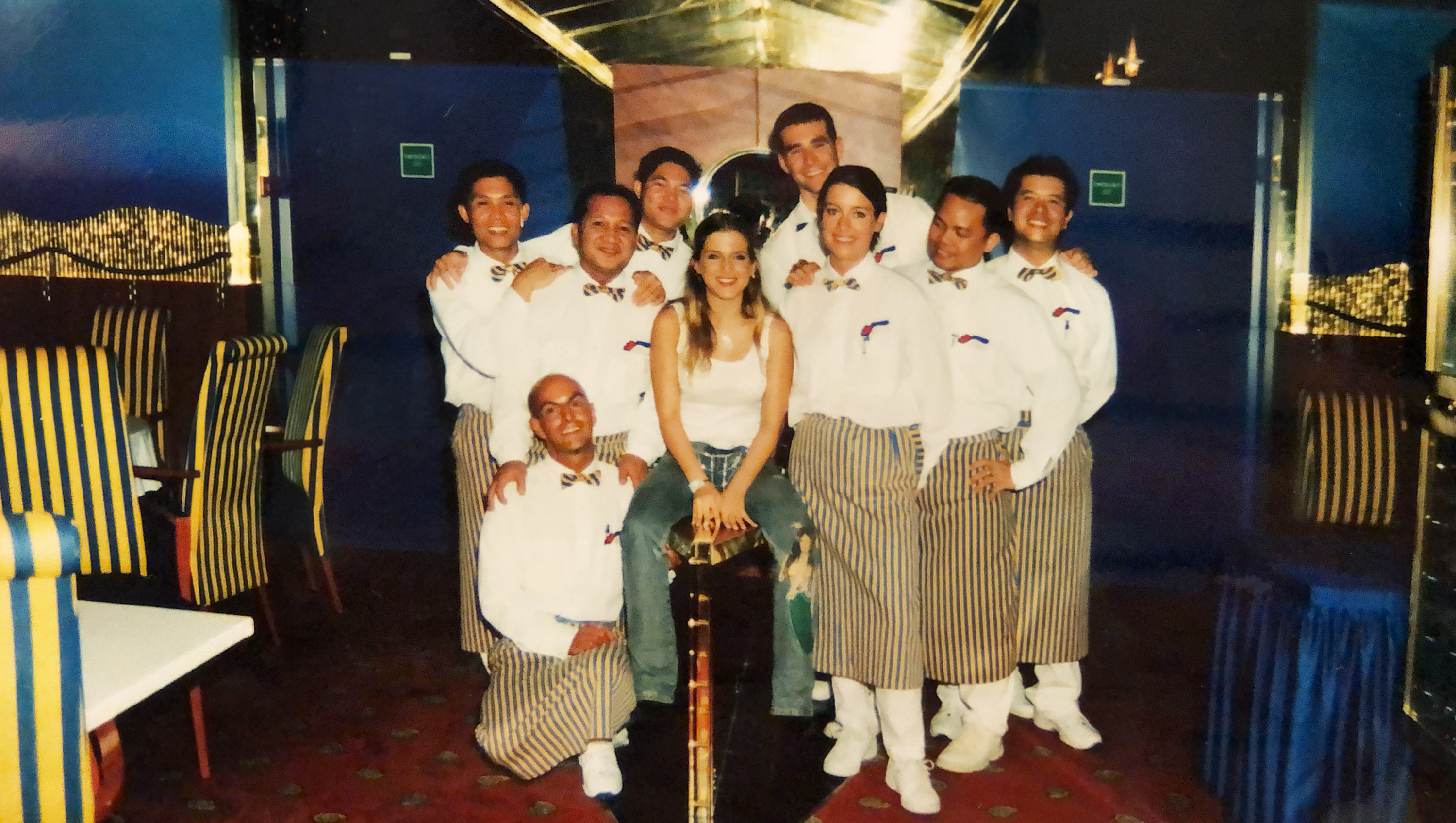 vorne: (Animationsleiter, Östterreich), Purser Moni, Guliermo (Barchef)