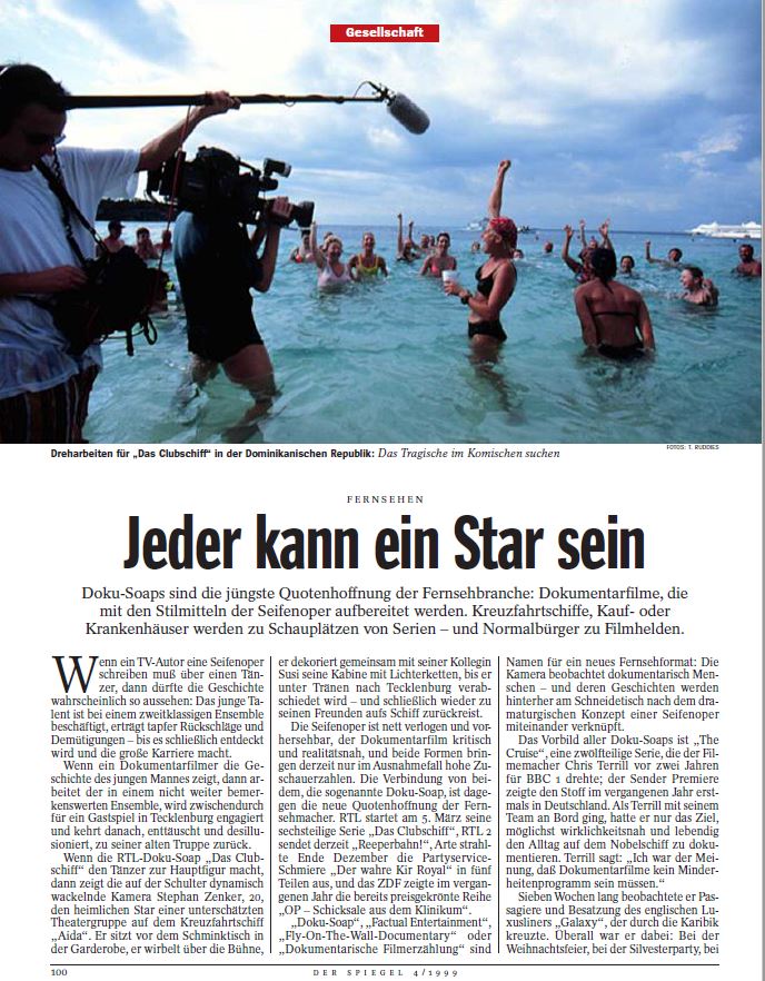 Darin die Feststellung: Doch schließlich sind die Doku-Soaps in Deutschland noch in der Phase des Experiments.