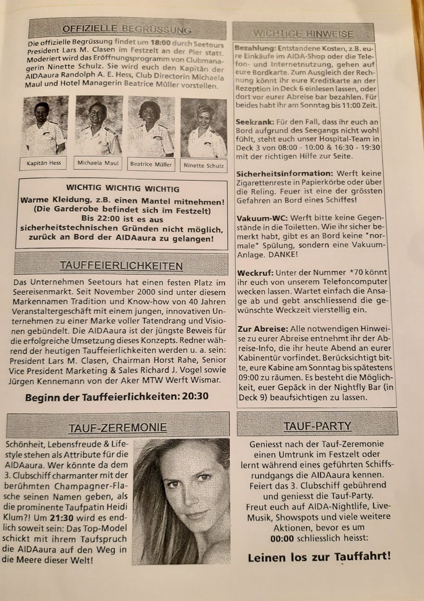 Bei der letzten Aura-Tour wurde eine Kopie der damaligen Taufzeitung vom 12.04.2003 verteilt.