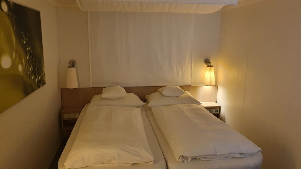 Das Platzangebot ist etwas geringer als auf den Sphinx Schiffen, zumindest haben wir das vom Durchgang neben dem Bett so empfunden.