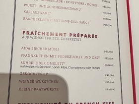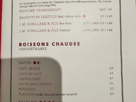 Speisen sind inklusive, Getränke sind zu bezahlen (oder GP). Außer der Orangensaft, der ist nur für Kiss und JS Gäste kostenfrei (vielleicht denke ich später an ein Foto der Karte).