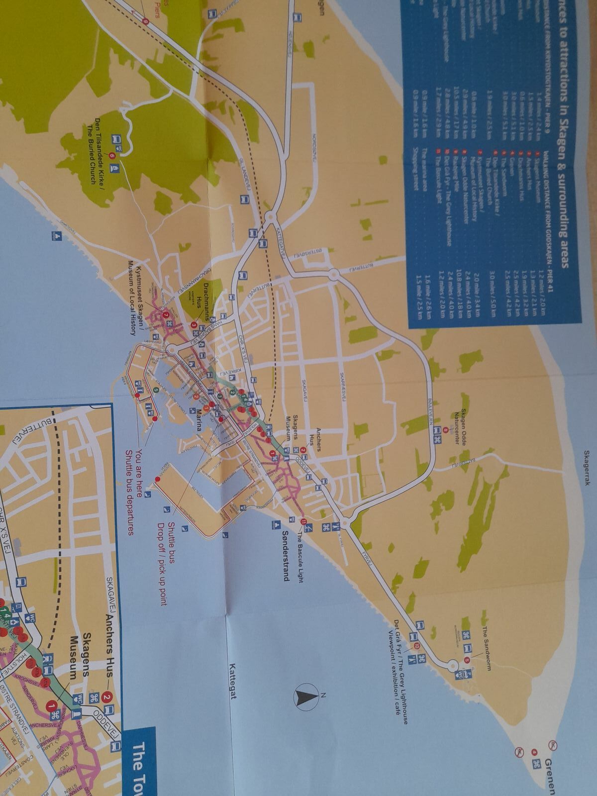 Wenn das Schiff am Liegeplatz Ostmole liegt und man nach Grenen möchte, lohnt sich der Shuttlebus in die Stadt nicht. Dann ist es kürzer, am Schiff zu starten.