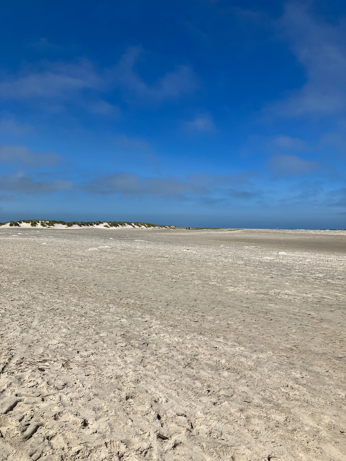 er fährt durch die Dünen, da ist das Laufen wohl etwas beschwerlich im lockeren Sand,zurück sind wir (barfuß) direkt an der Wasserlinie im festen Sand gelaufen...