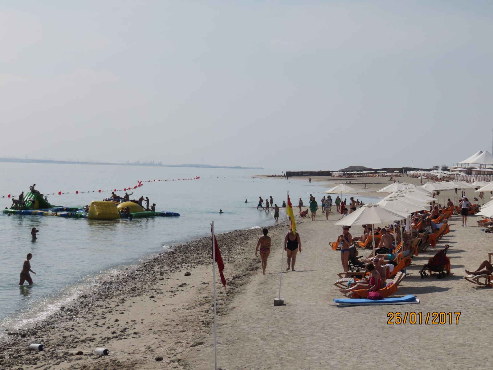 Ich war dort 2017. Was den Strand betrifft, war ich sehr enttäuscht. Es ist kein Sandstrand wie wir ihn kennen, sondern er sah eher aus wie Betonestrich im Sack. Zieht also Schuhe an, auch im Wasser, denn dort gibt es viele unangenehme Steine. Schatten ist dort auch Fehlanzeige. Wer keinen Sonnenschirm mehr bekommen hat, hat schlechte Karten.