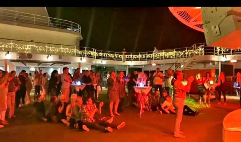 Lebenszeichen von Bord. Ob es sinnvoll ist, bei Covid19 Verdacht auf dem Pooldeck Veranstaltungen abzuhalten, muss jeder für sich selbst entscheiden. Ich finde es verantwortungslos.