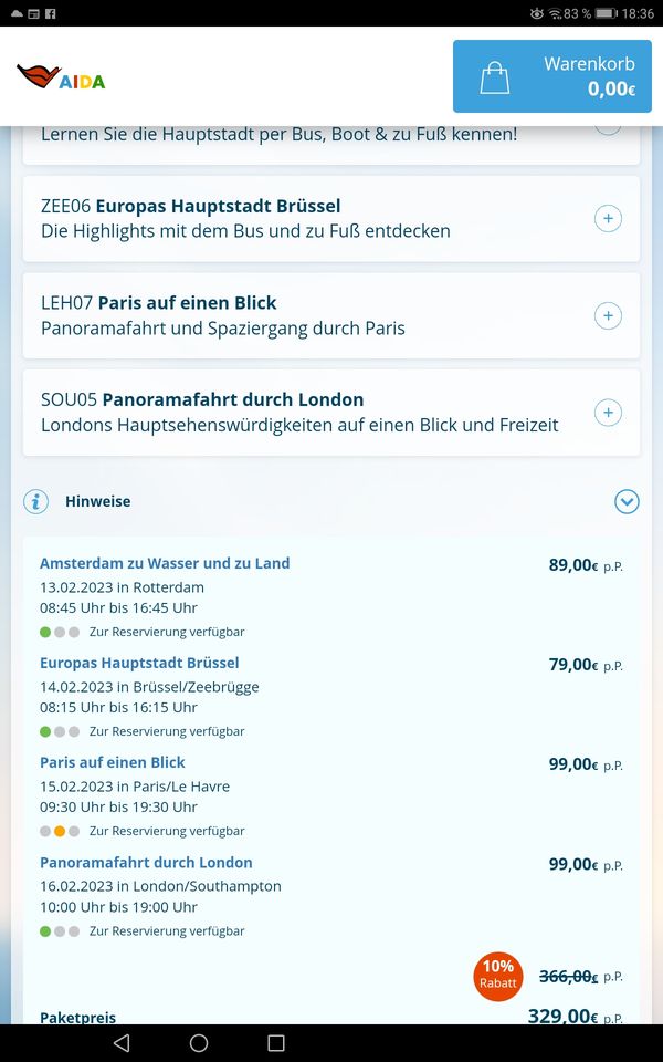 Seit wann gibt es überhaupt diese Paketangebote? Kann ich hoffen, dass auch Ausflüge aus der 2.Woche dazu kommen? Endet das Angebot irgendwann? Kann man die Ausflüge später auch noch tauschen? Ich habe es nur zufällig in "MyAIDA" entdeckt.